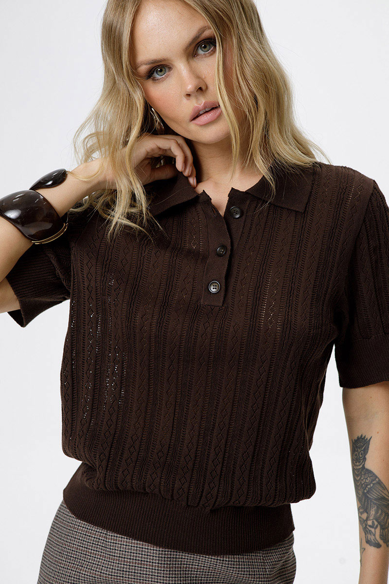 Хлопковое свободное поло ажурной вязки.