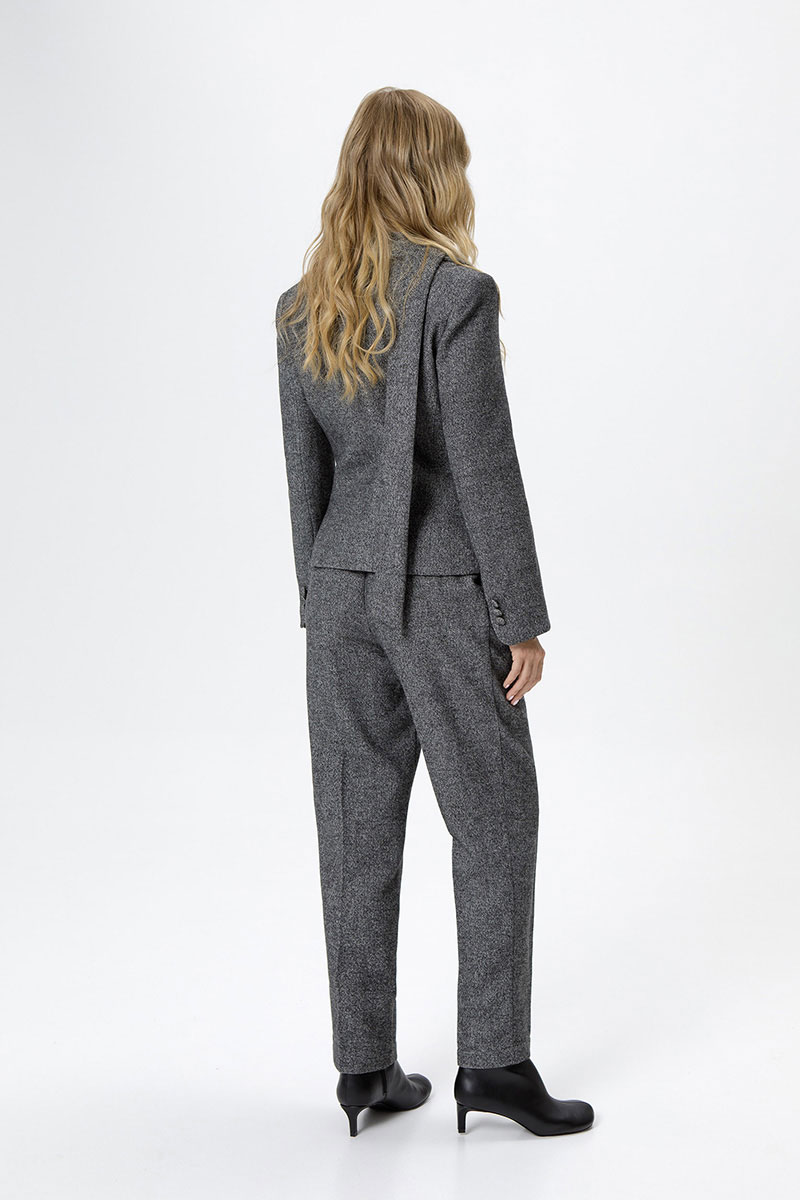 Приталенный жакет с воротником-стойкой и съемным шарфиком.