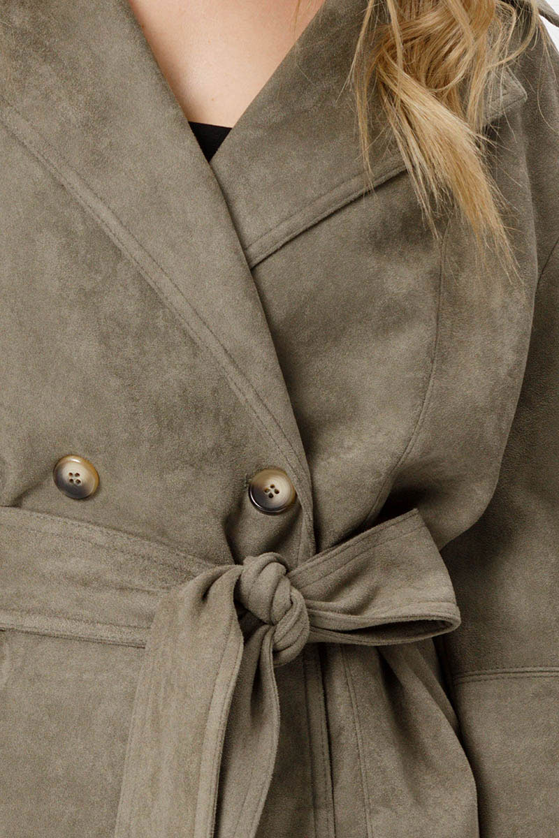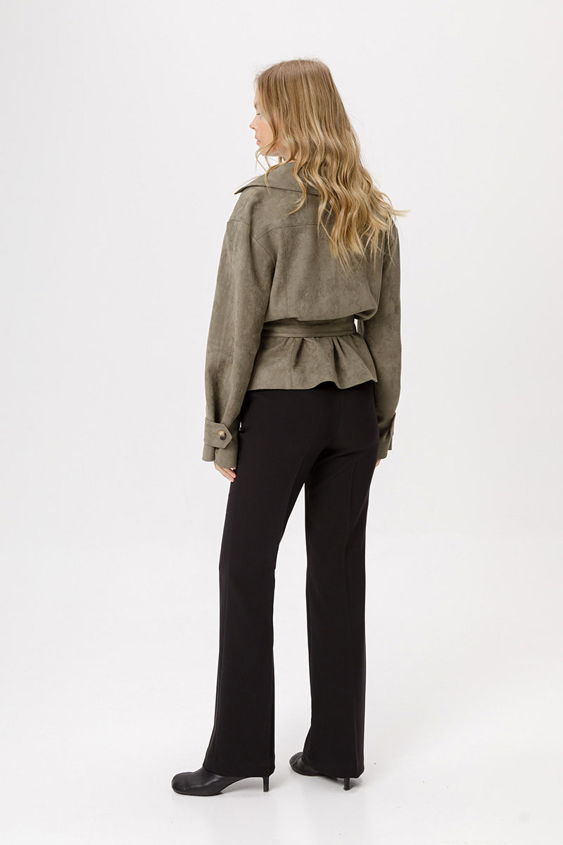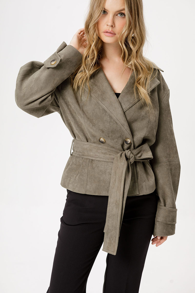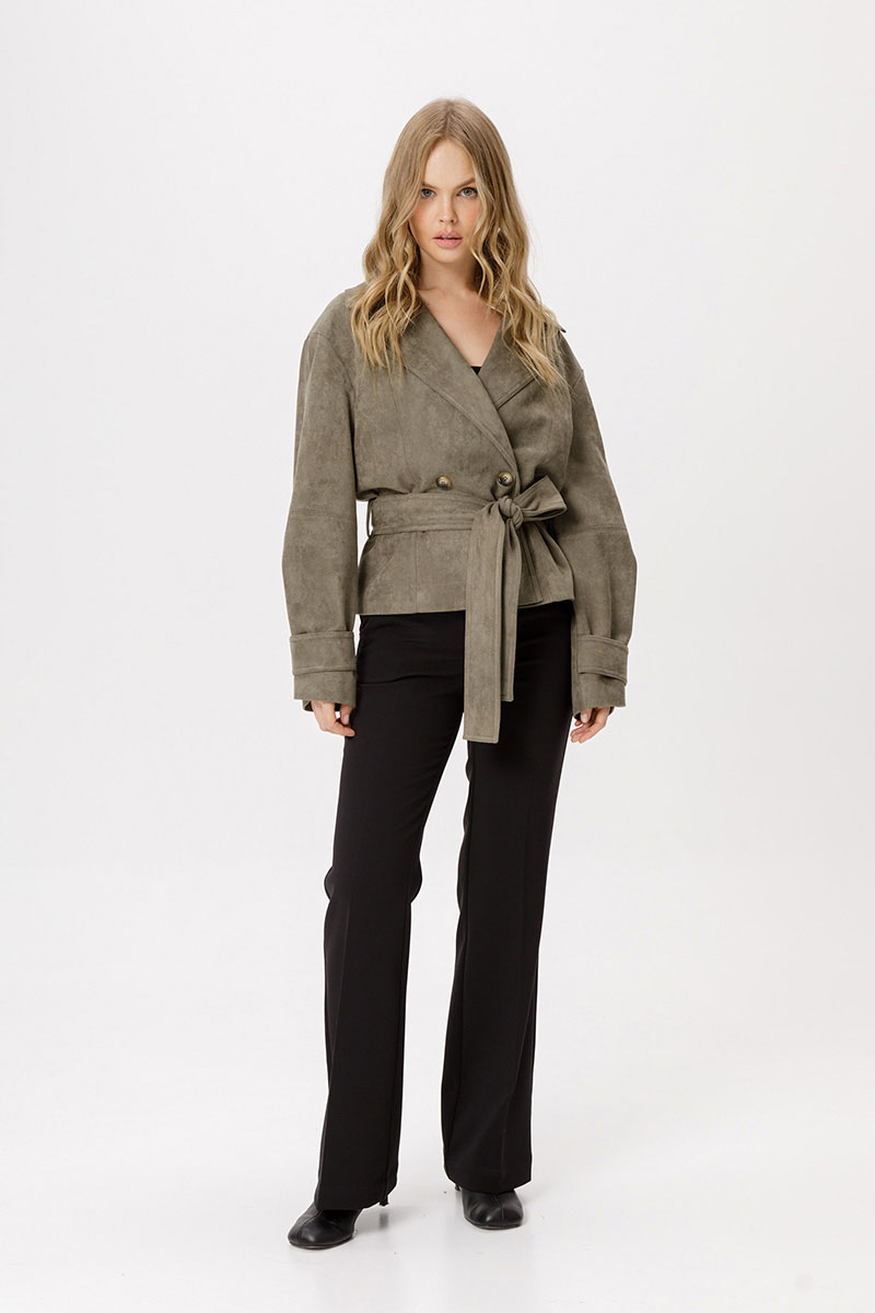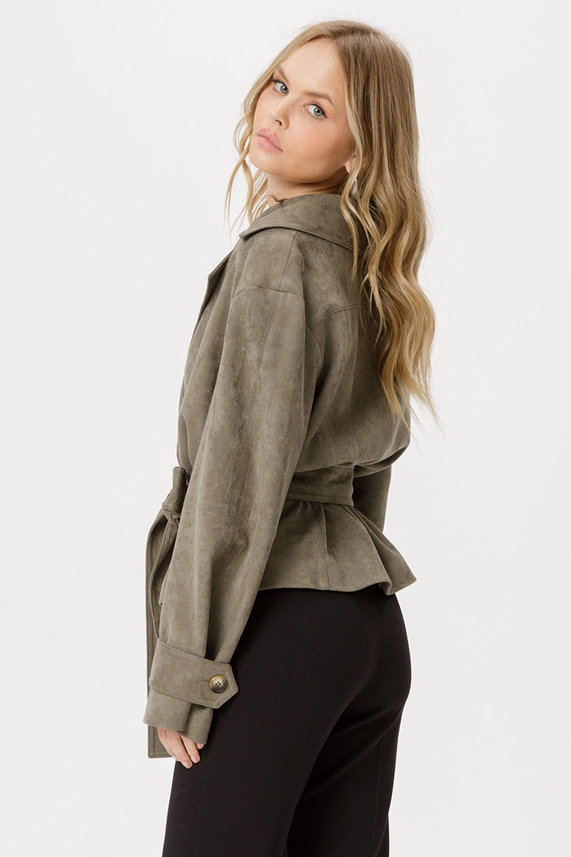 Замшевый укороченный жакет с поясом.