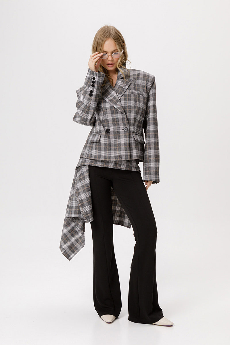 Укороченный оверсайз жакет в клетку с необработанными проймами.