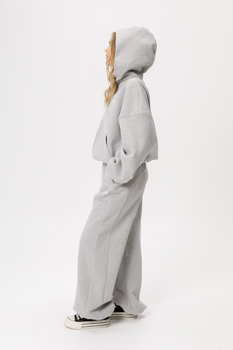 Детали: брюки широкие с рельефными швами и регулировкой по низу, боковые карманы. На передней части нанесен небольшой фирменный логотип.