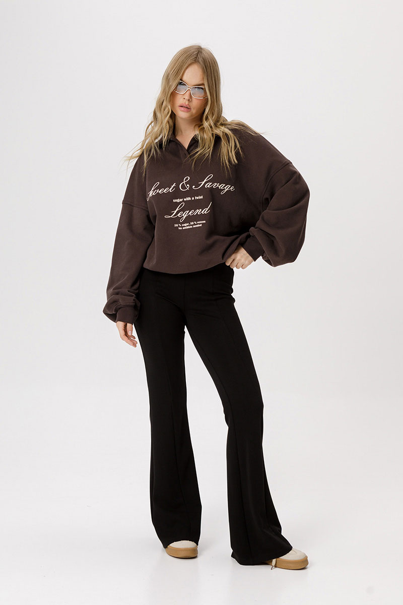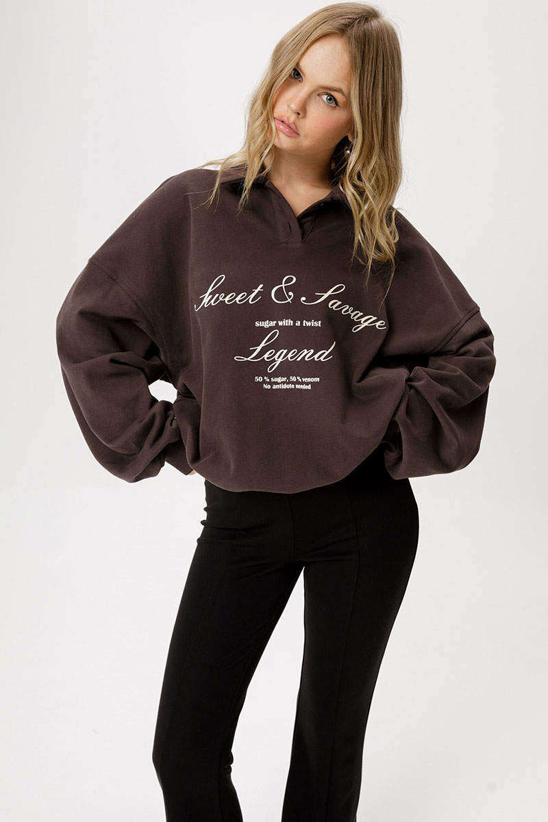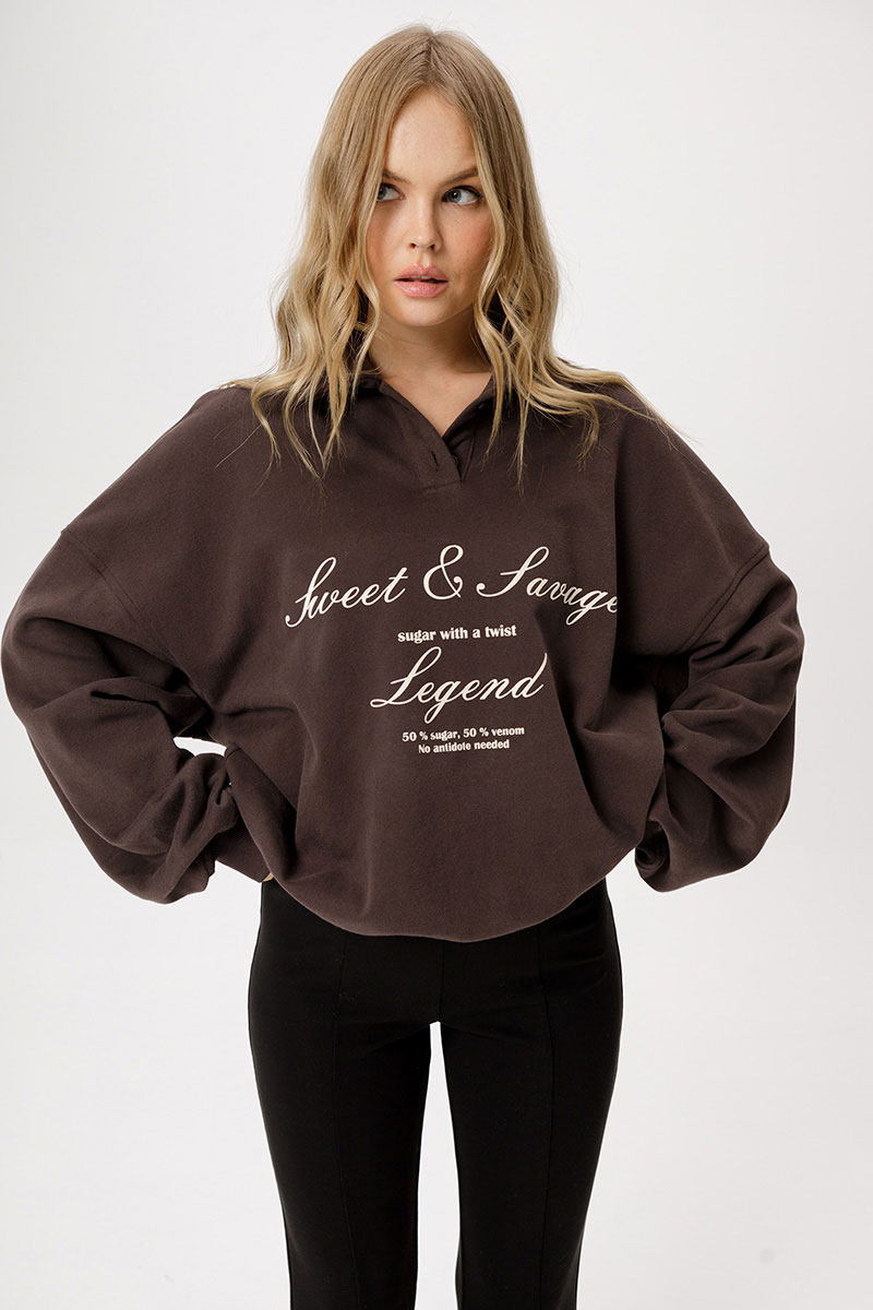 Оверсайз свитшот с воротником поло из трехнитки с эффектом бархата.