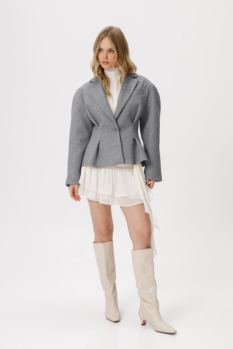 Приталенный жакет о-образного силуэта из утепленной ткани.