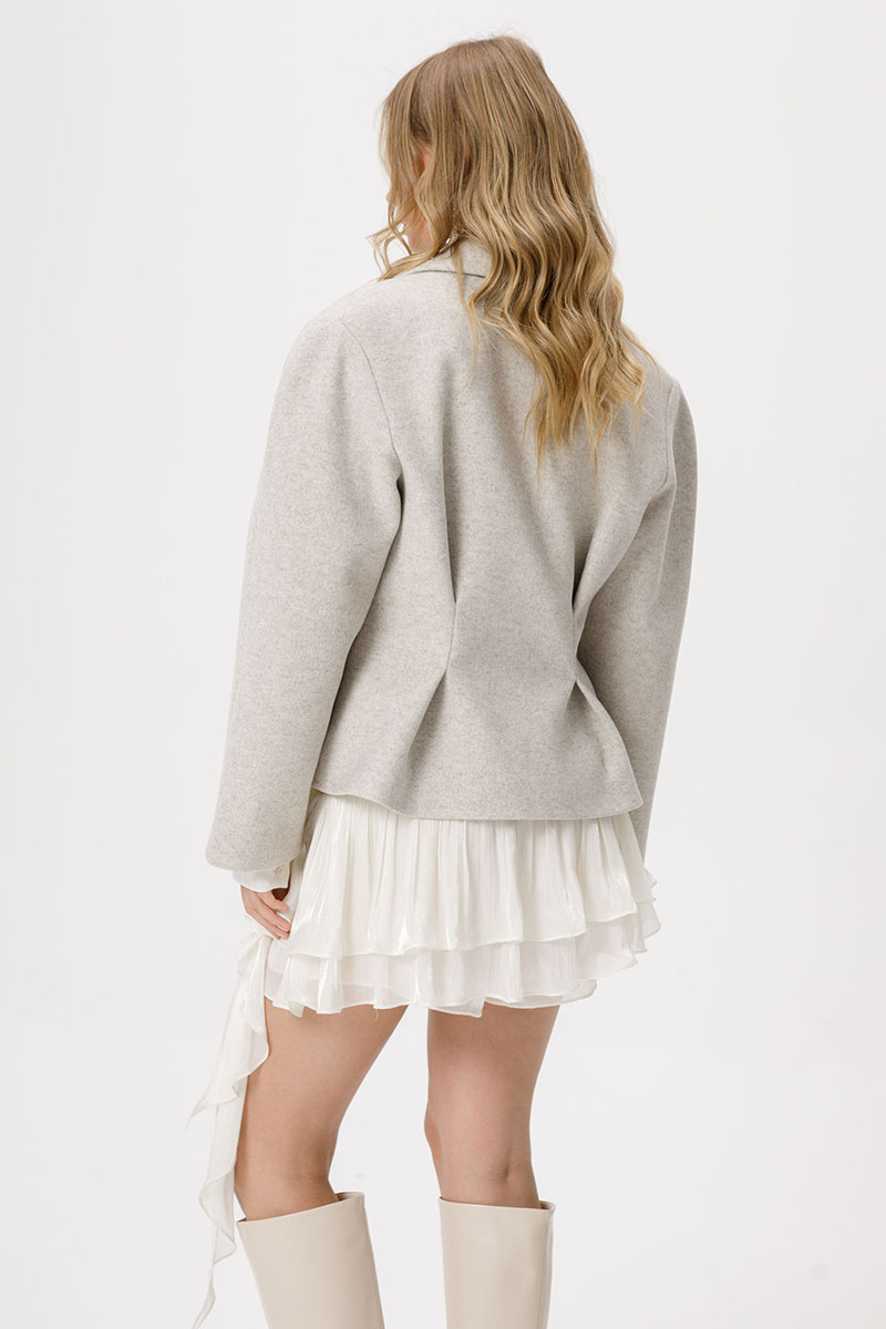 Приталенный жакет о-образного силуэта из утепленной ткани.