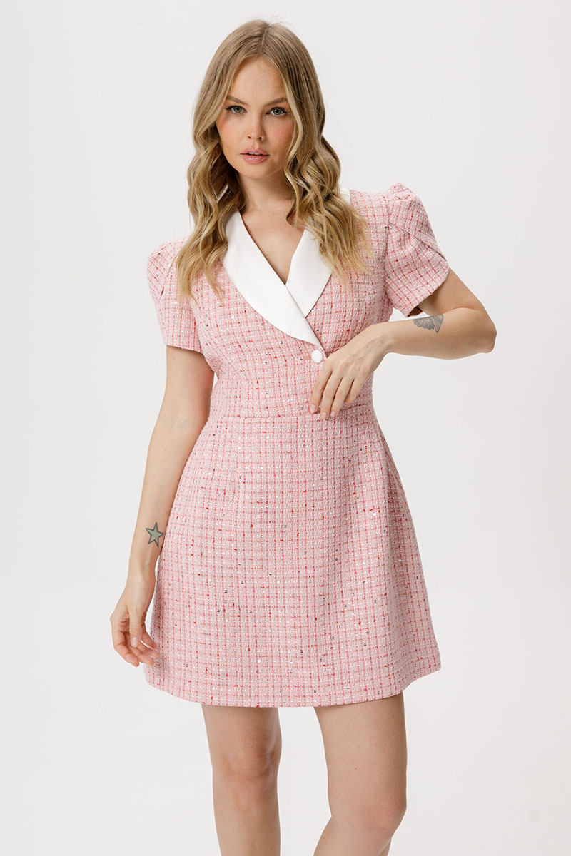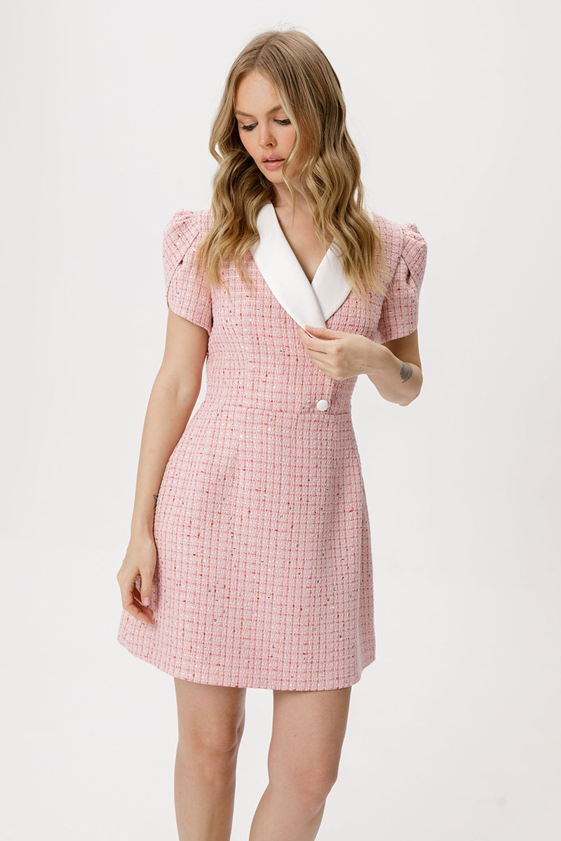 Мини платье из фактурной ткани с рукавом «фонариком».