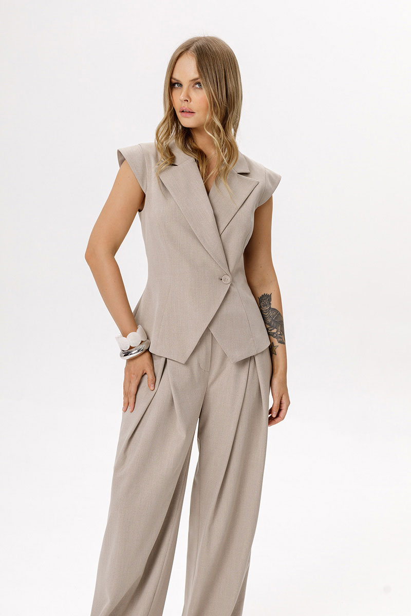 Брюки-палаццо со складками и высокой посадкой.