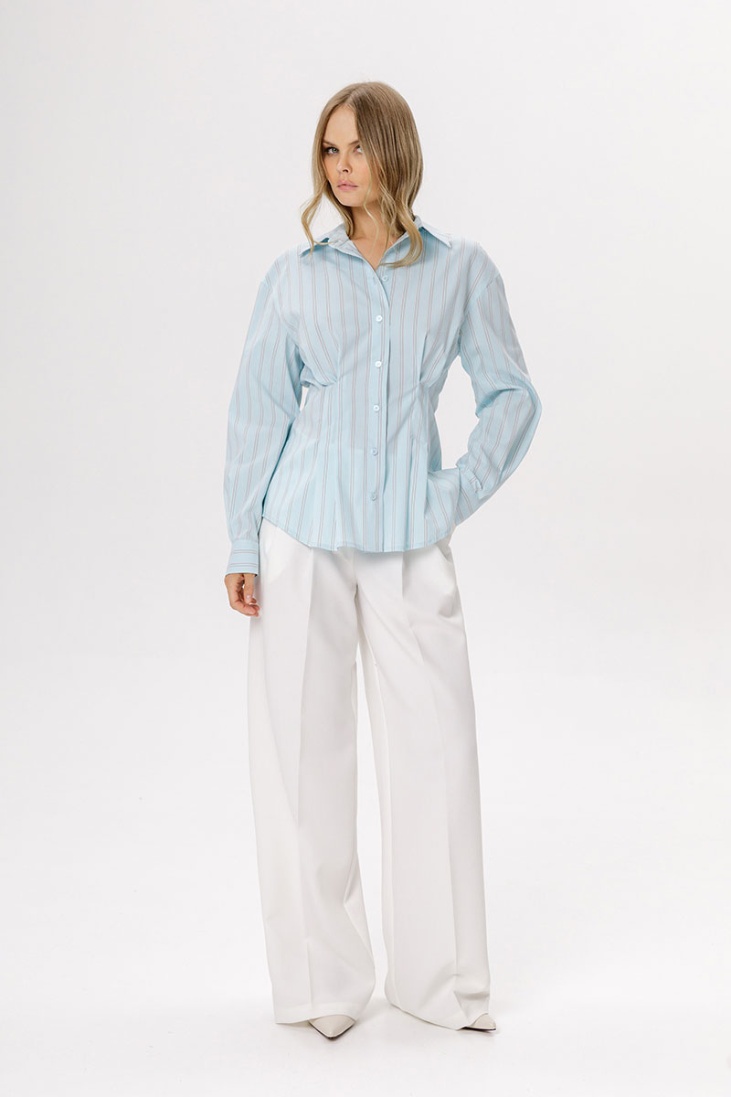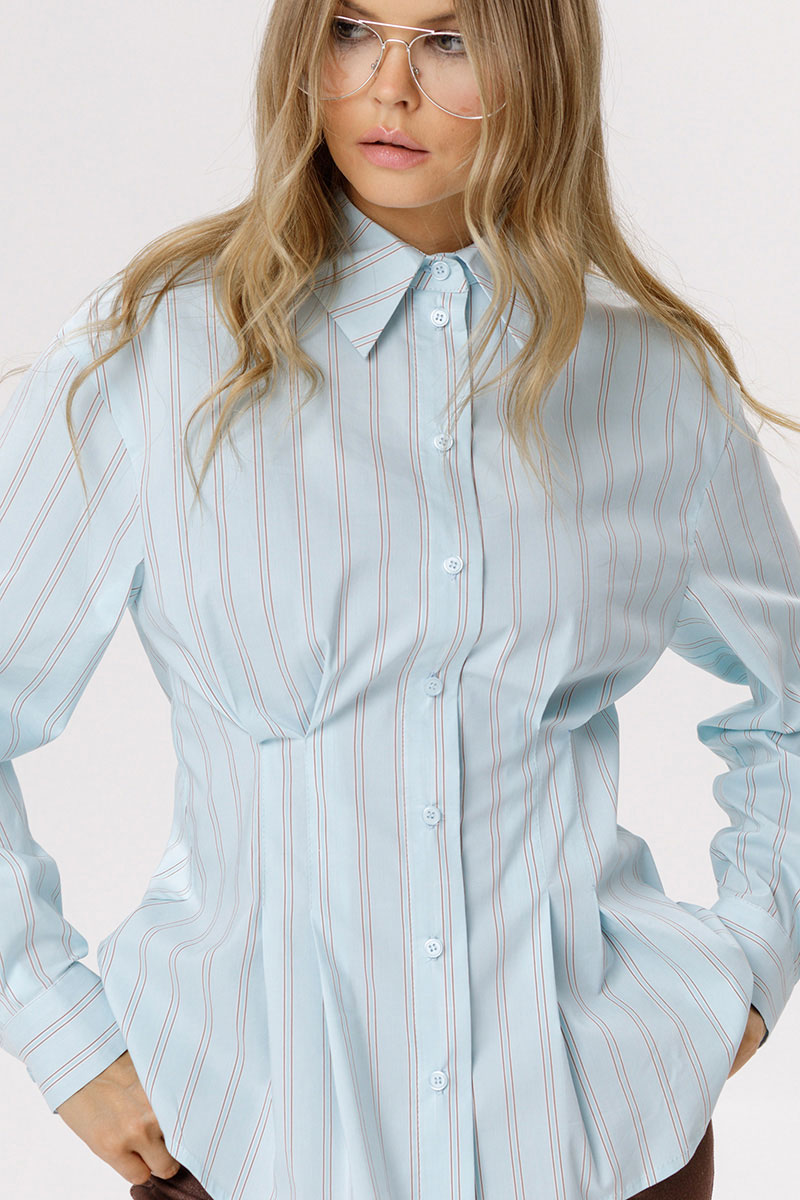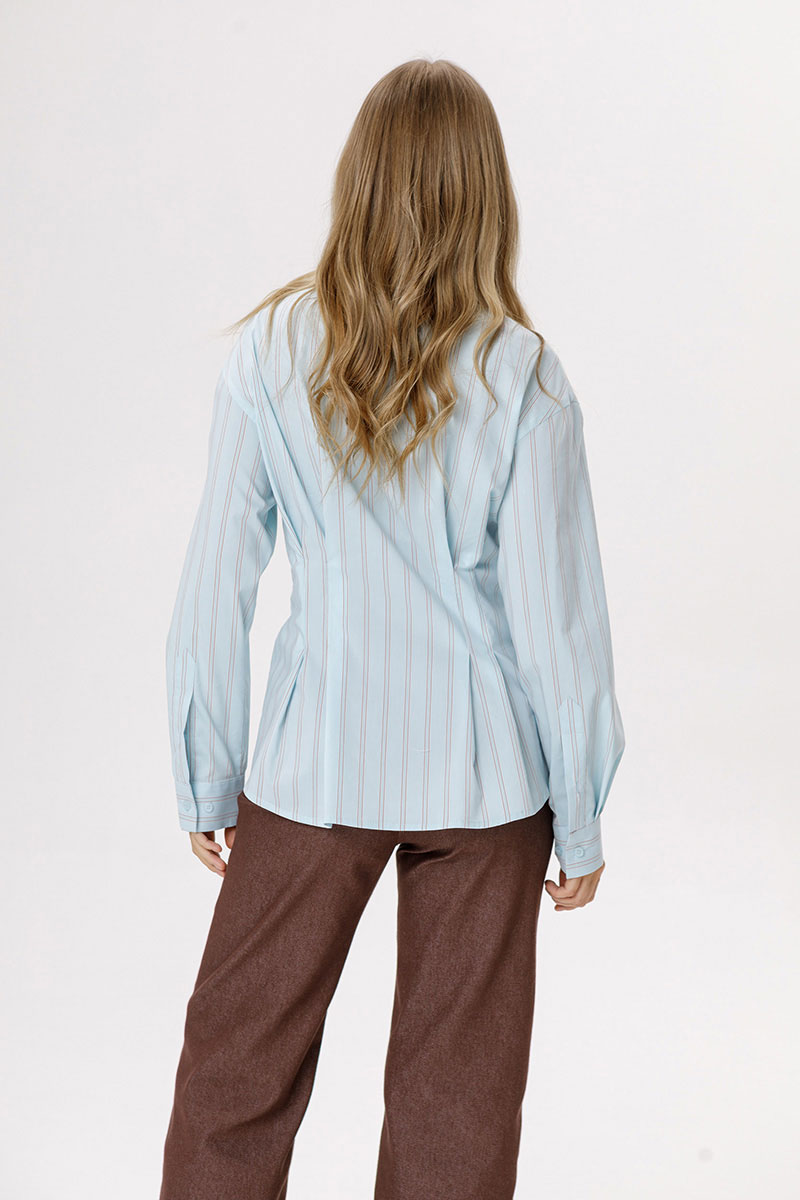 Приталенная рубашка в полоску из хлопка со складками по талии.