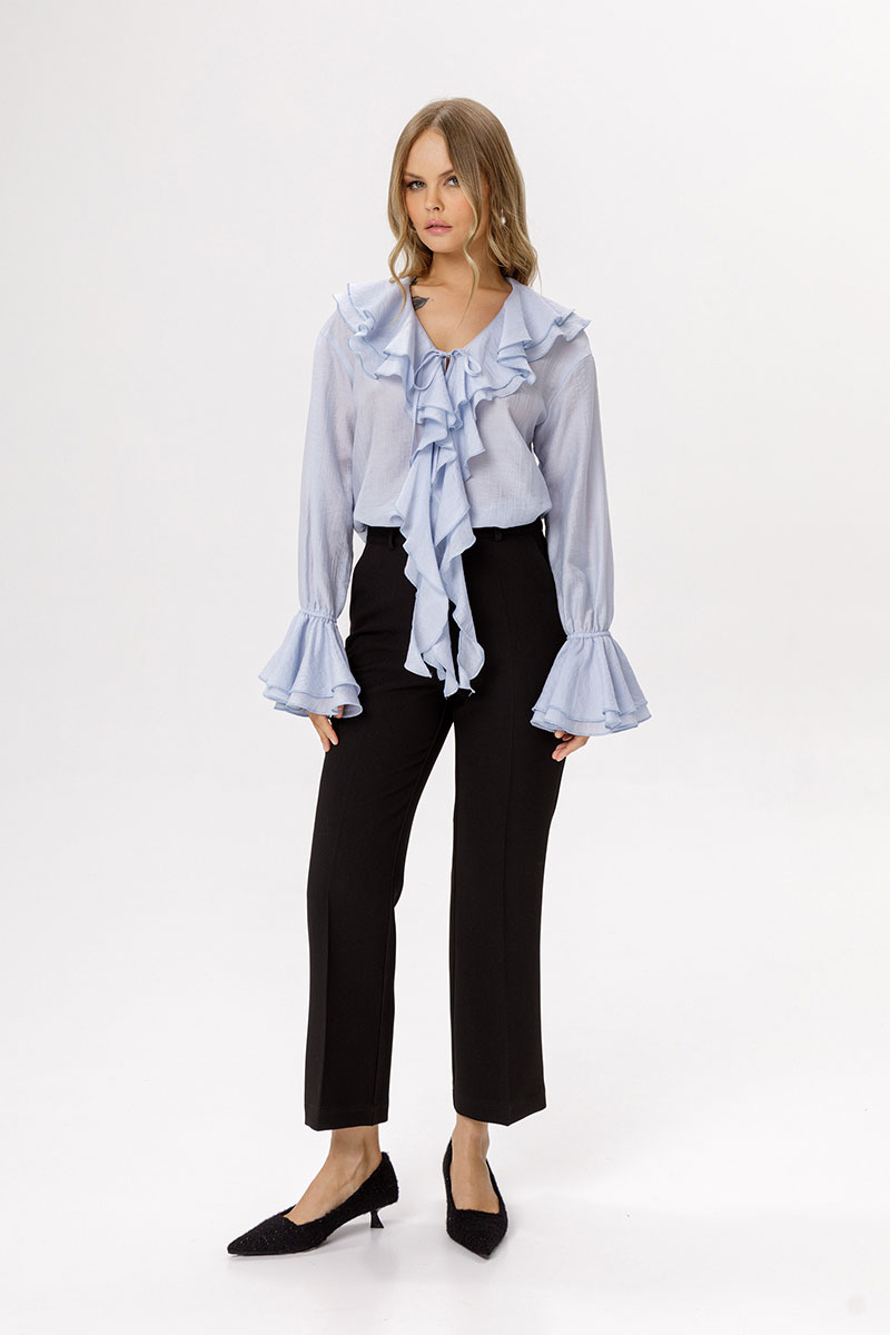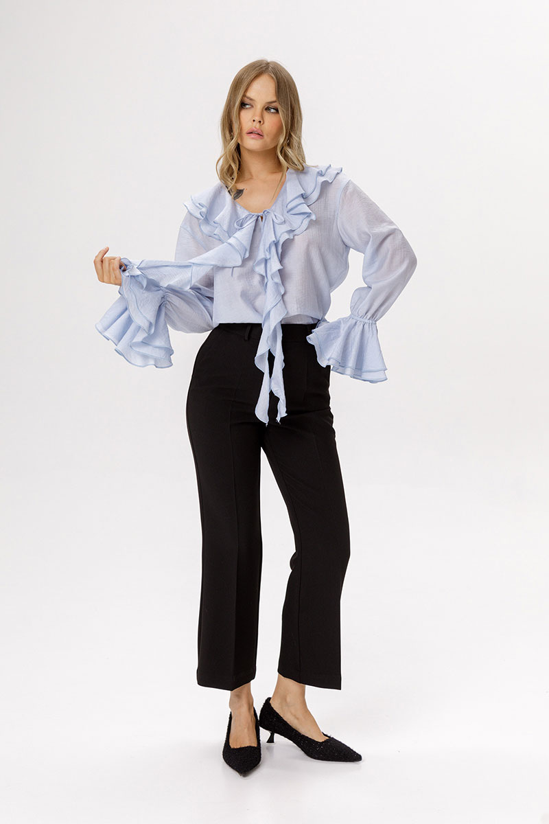 Укороченные брюки-клёш со стрелками (приобрести блузу с фото можно по арт. 6561).