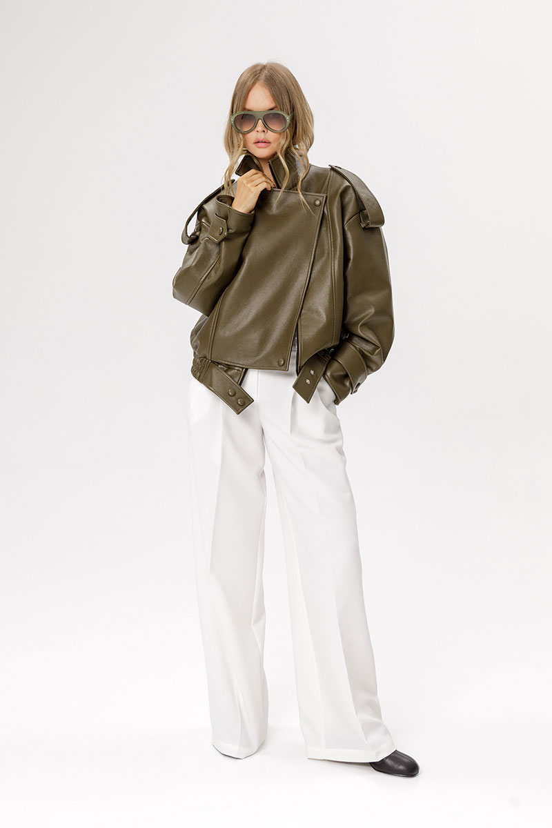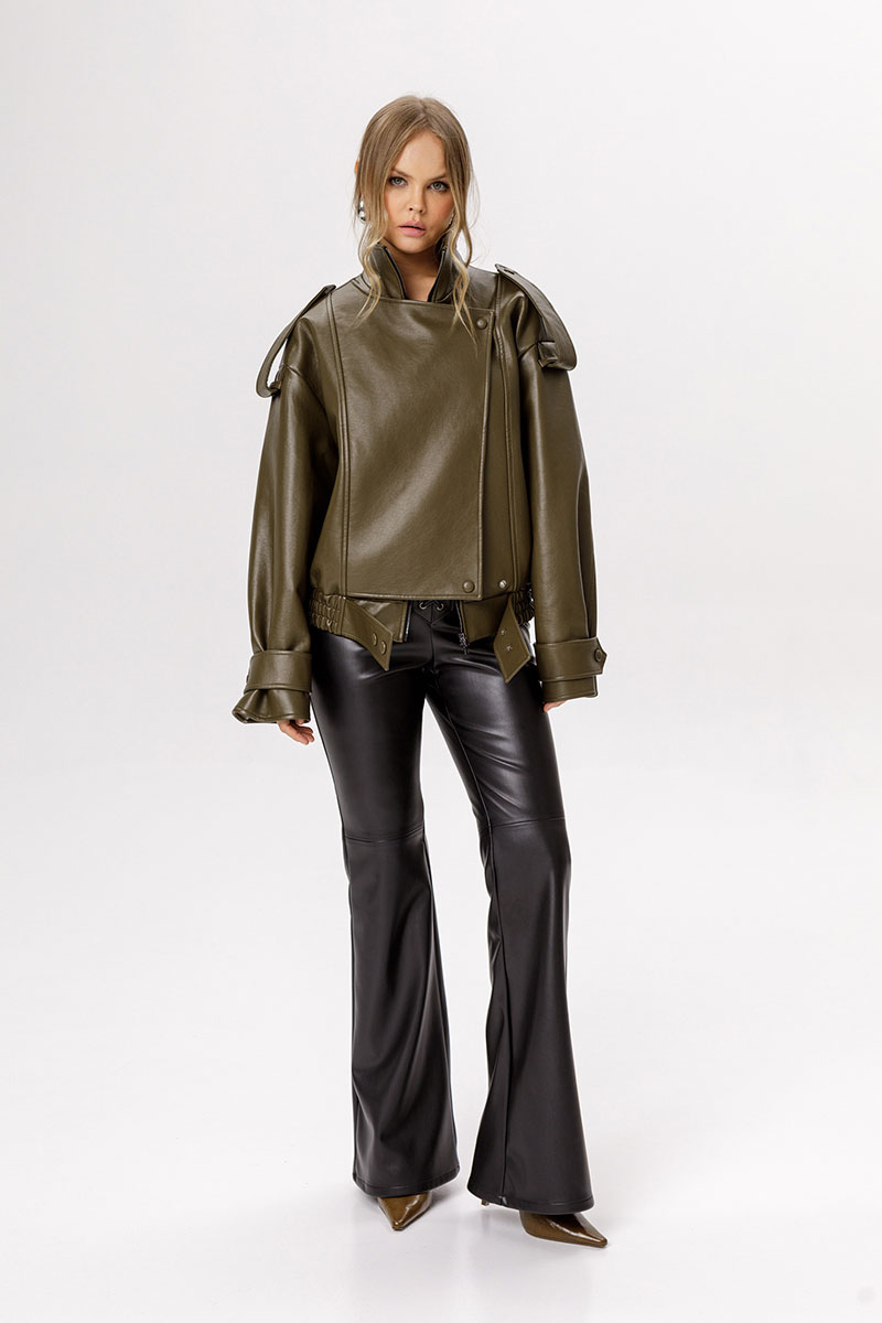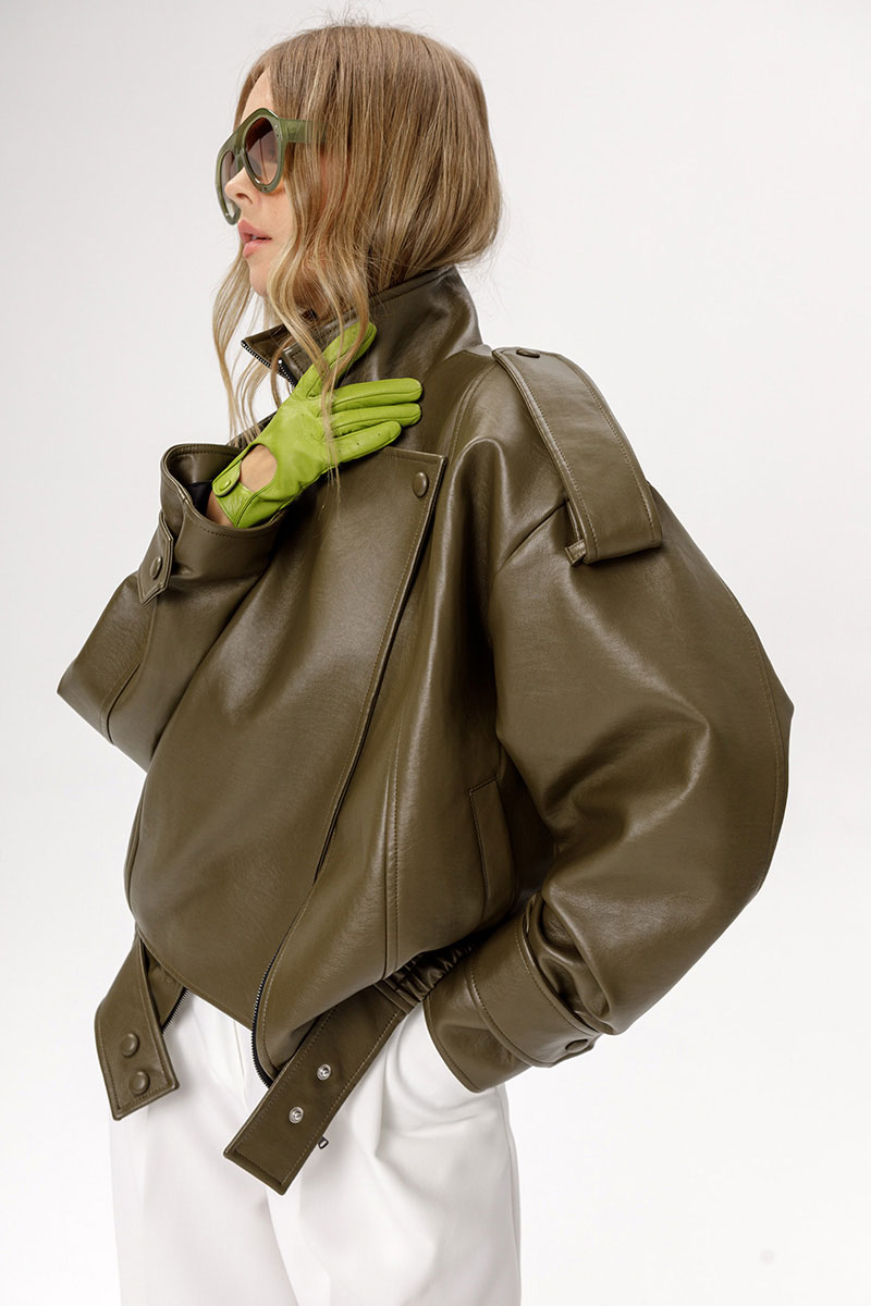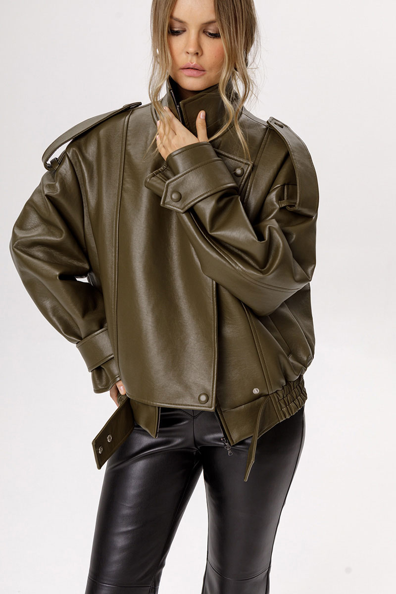Куртка оверсайз из лакированной экокожи.