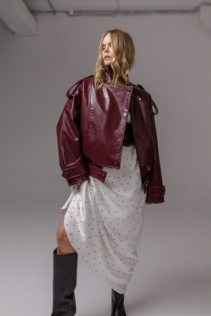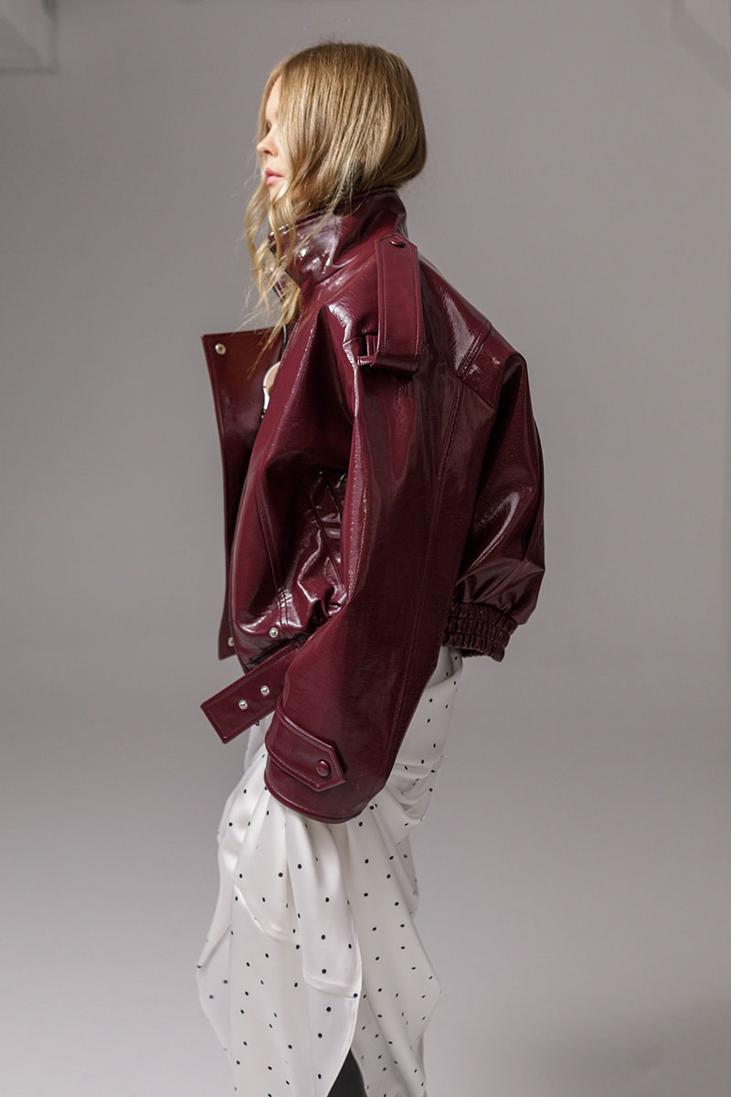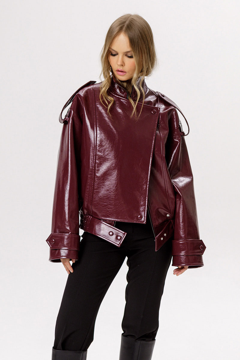 Куртка оверсайз из лакированной экокожи.