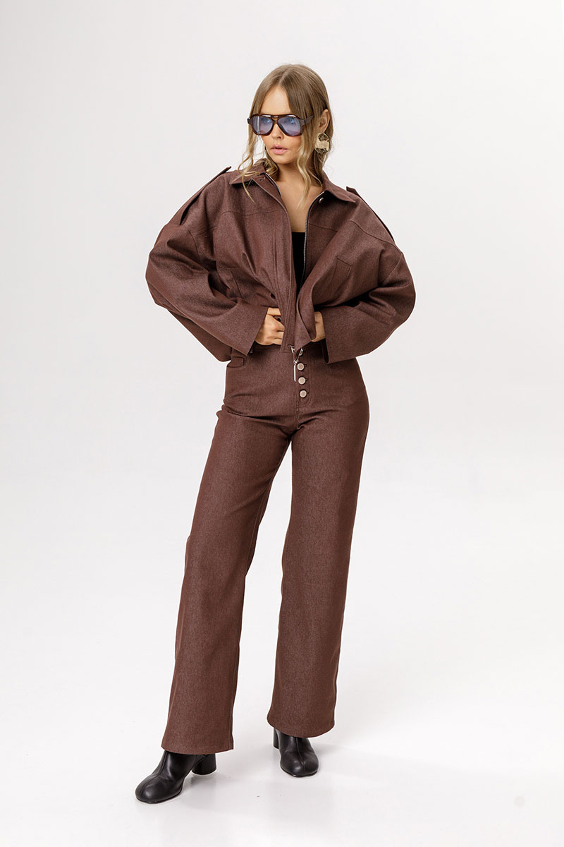 Детали: бомбер О-силуэта, свободный покрой и расширеные плечи, перед с кокеткой, стояче-отложной воротник, застёжка на молнию и металлические пуговицы, функциональные карманы, погоны, бомбер на подкладке.