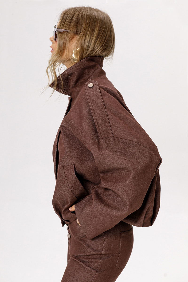 Детали: брюки с высокой посадкой, прилегающий силуэт, притачной пояс со шлевками, застежка на пуговицы, перед с боковыми карманами, спинка с кокеткой и двумя накладными карманами.