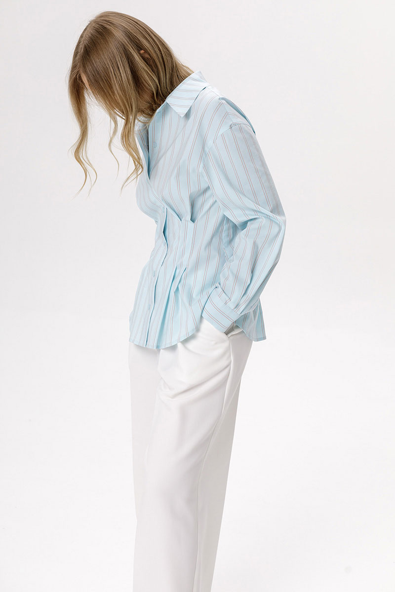 Комплект-двойка из приталенной рубашки из хлопка и брюк-палаццо.