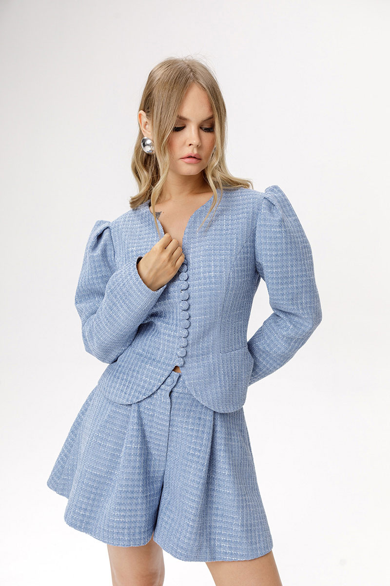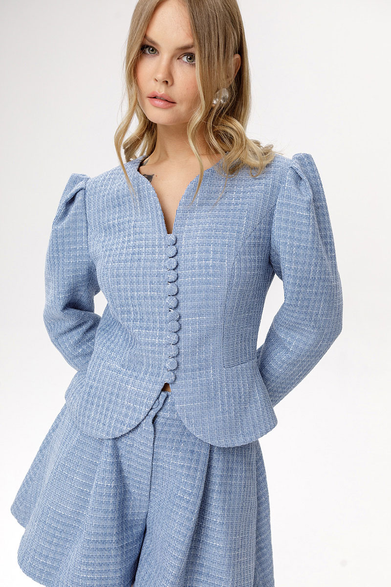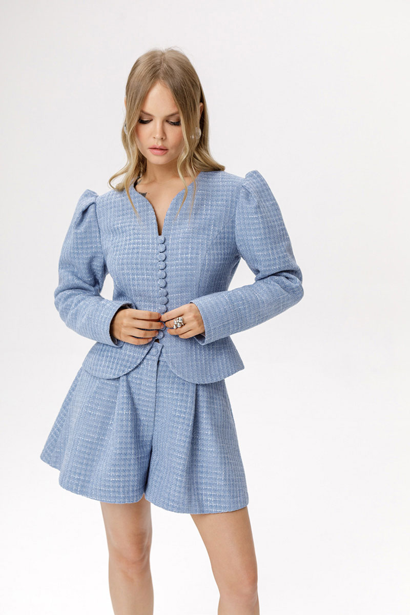 Укороченный жакет из фактурной ткани (приобрести шорты с фото можно по арт. 6625).