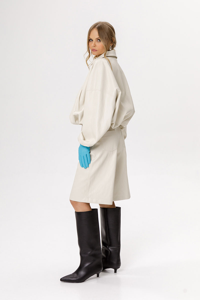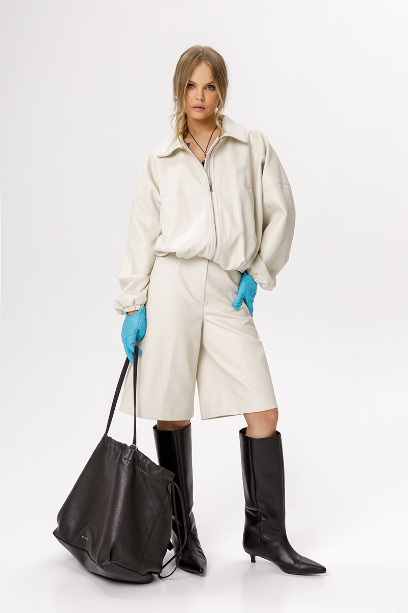 Укороченная куртка-бомбер из экокожи.