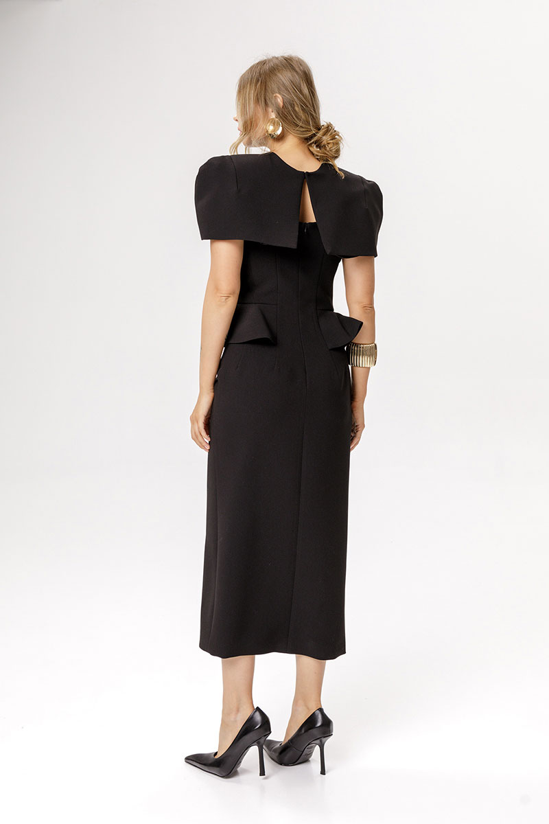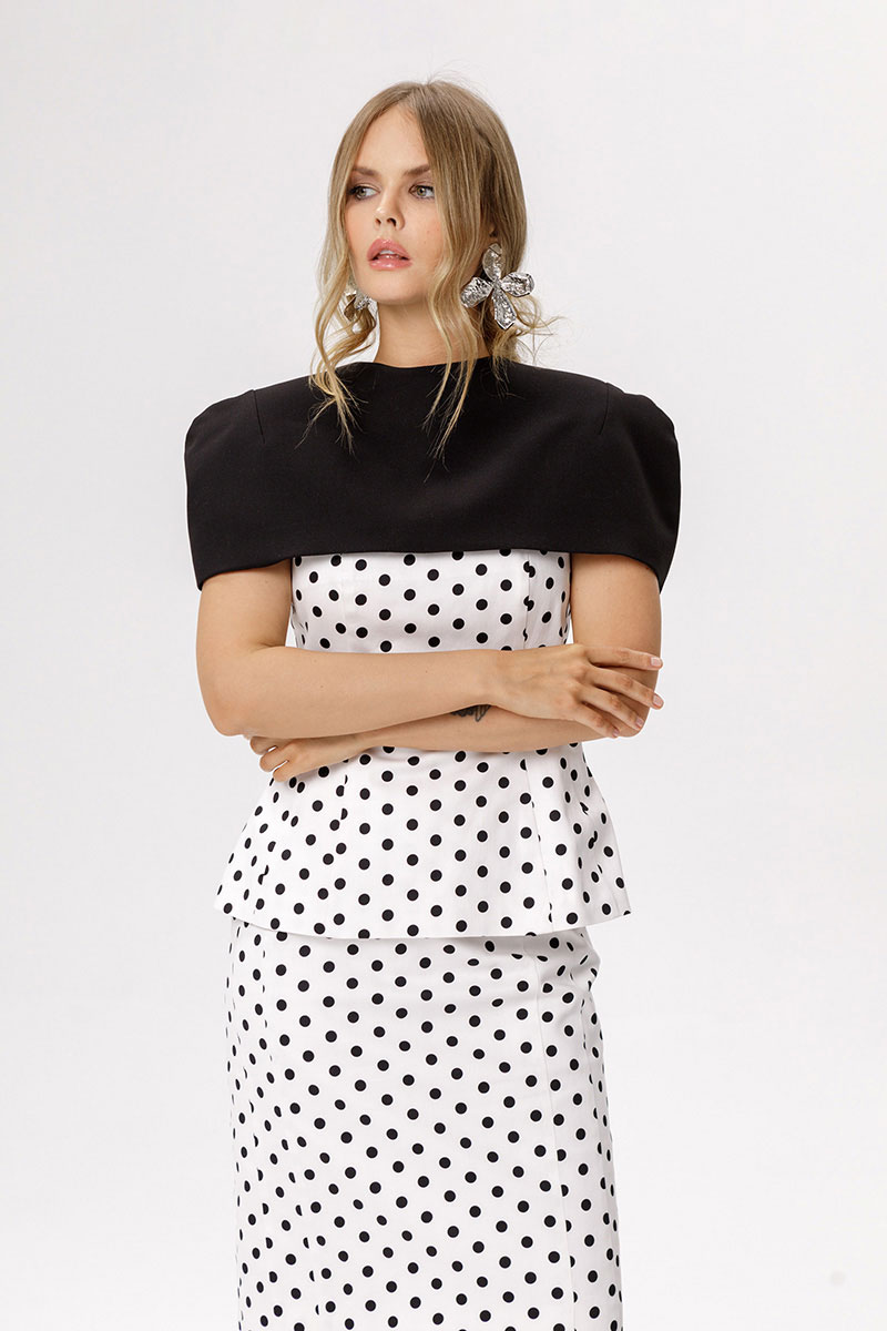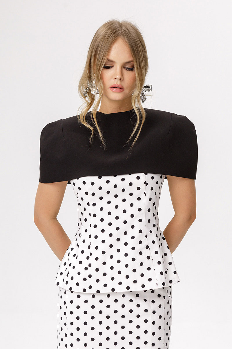 Детали: круглая горловина, вытачками по плечам и плевые накладки, застежка на навесную петлю и пуговицу, на подкладке. Кейп не имеет переда и спинки.