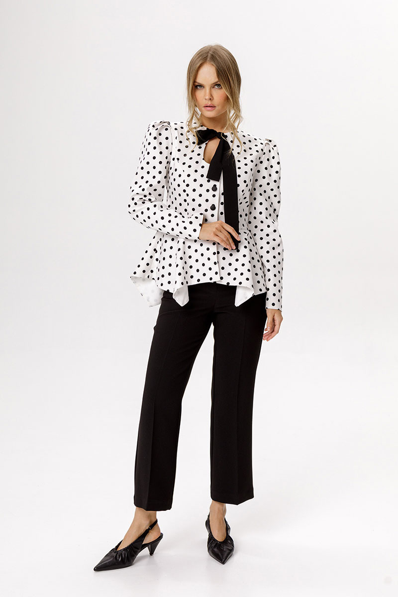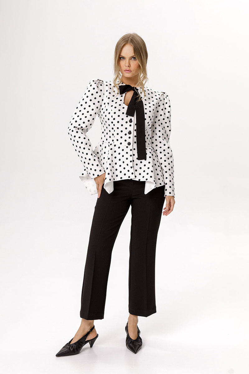 Хлопковый жакет в горохи с вырезом-каплей.