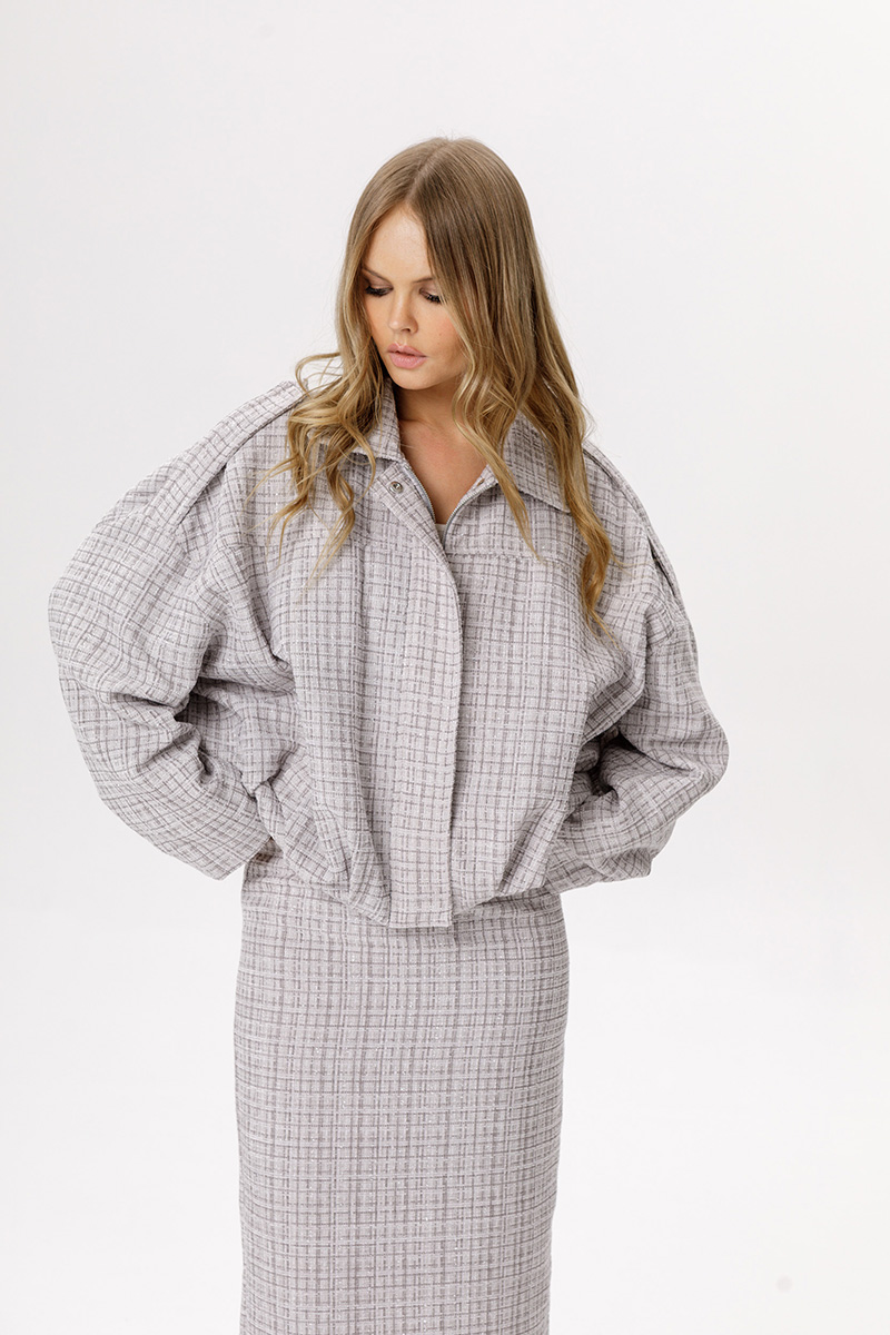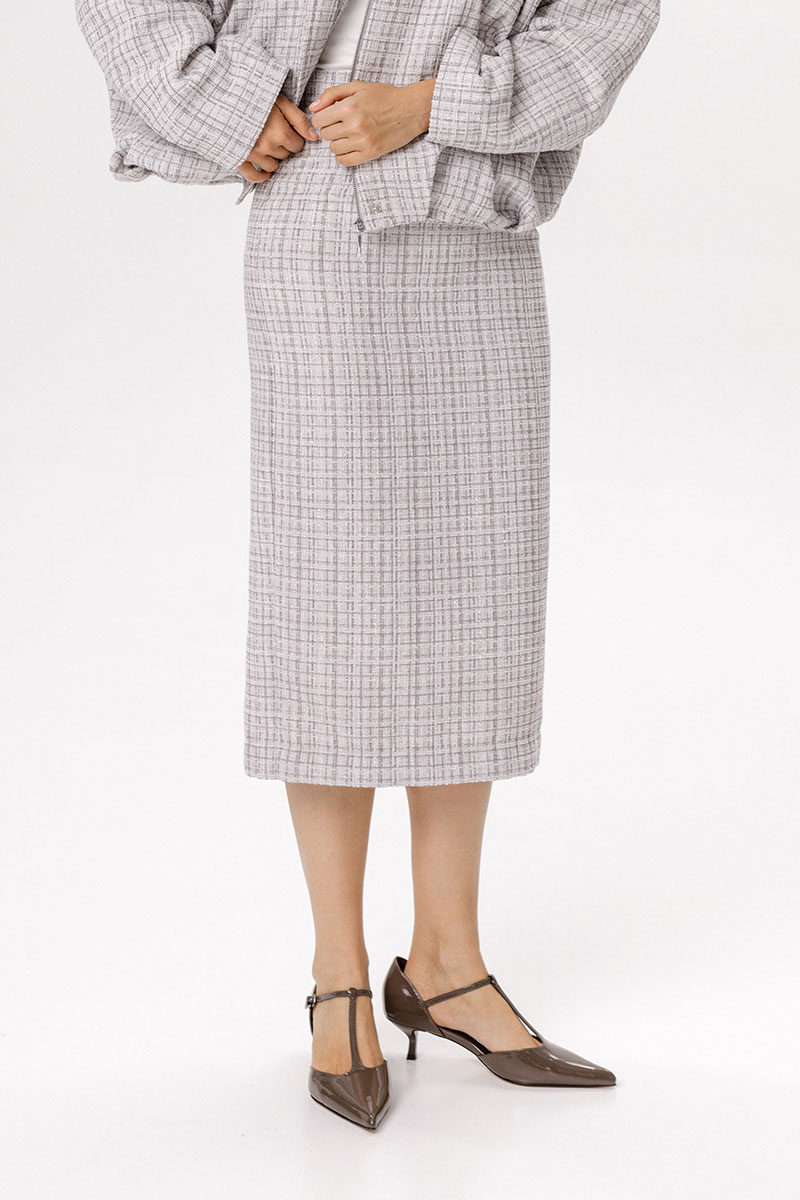 Прямая юбка миди из фактурной ткани.