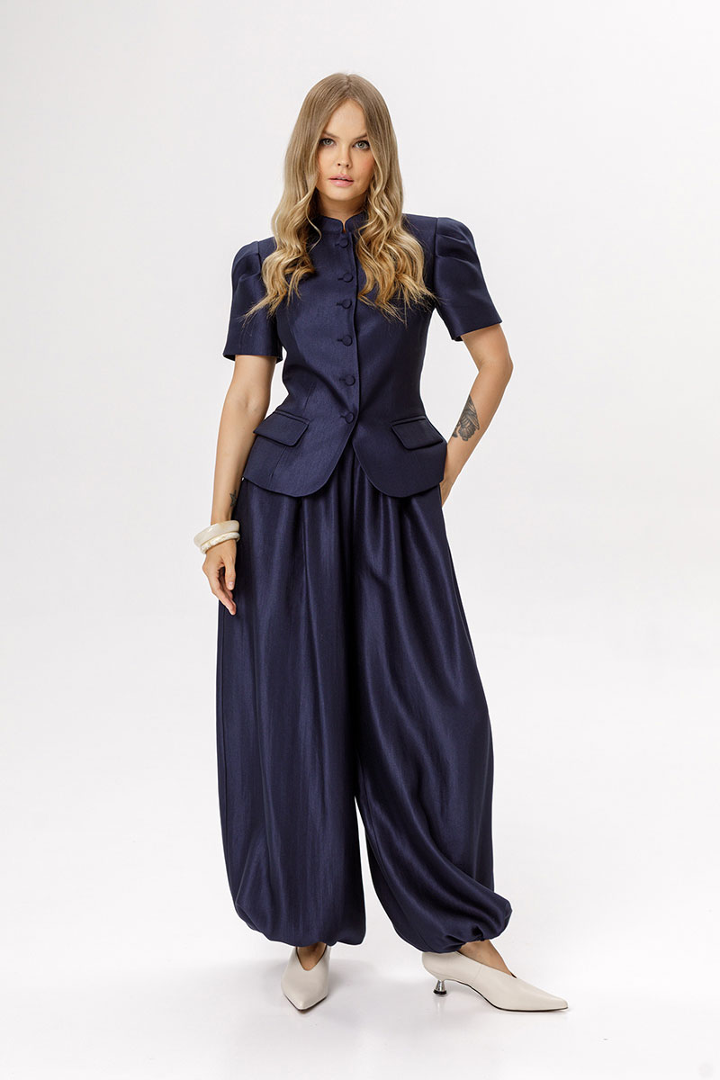Укороченный жакет с рукавами-фонариками.
