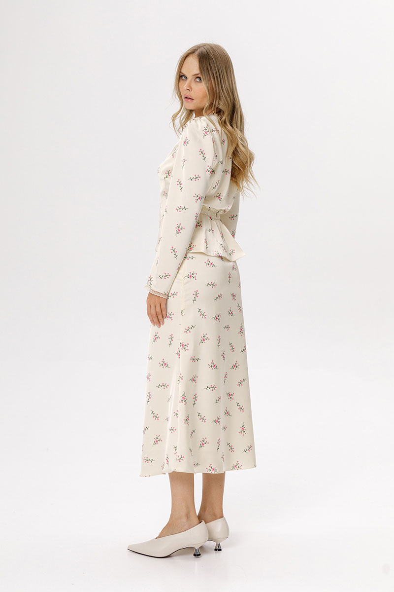 Юбка из принтованного атласа длины миди.