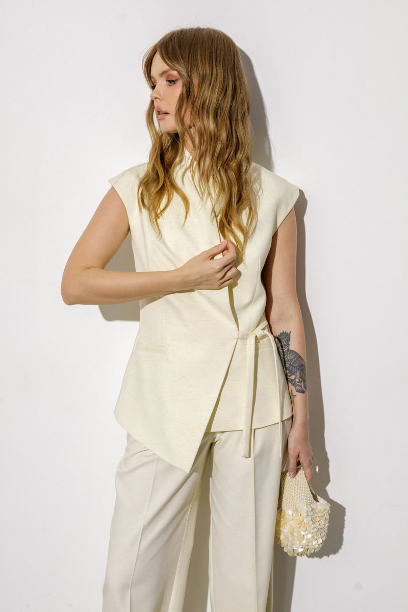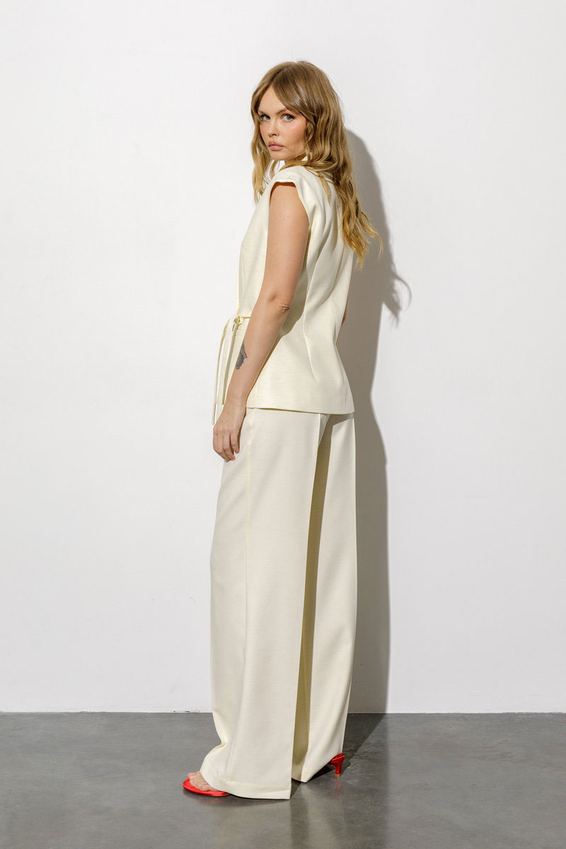 Широкие брюки-палаццо с высокой посадкой из текстильной ткани (приобрести жилет с фото можно по арт. 6688).