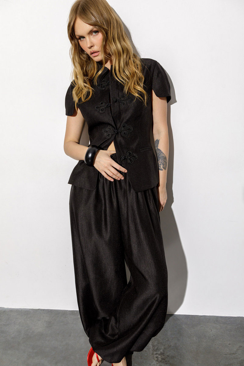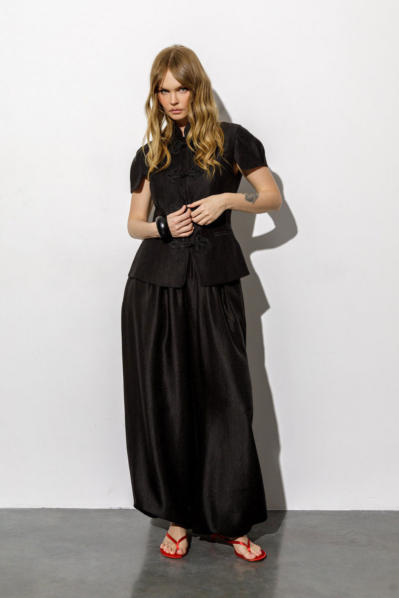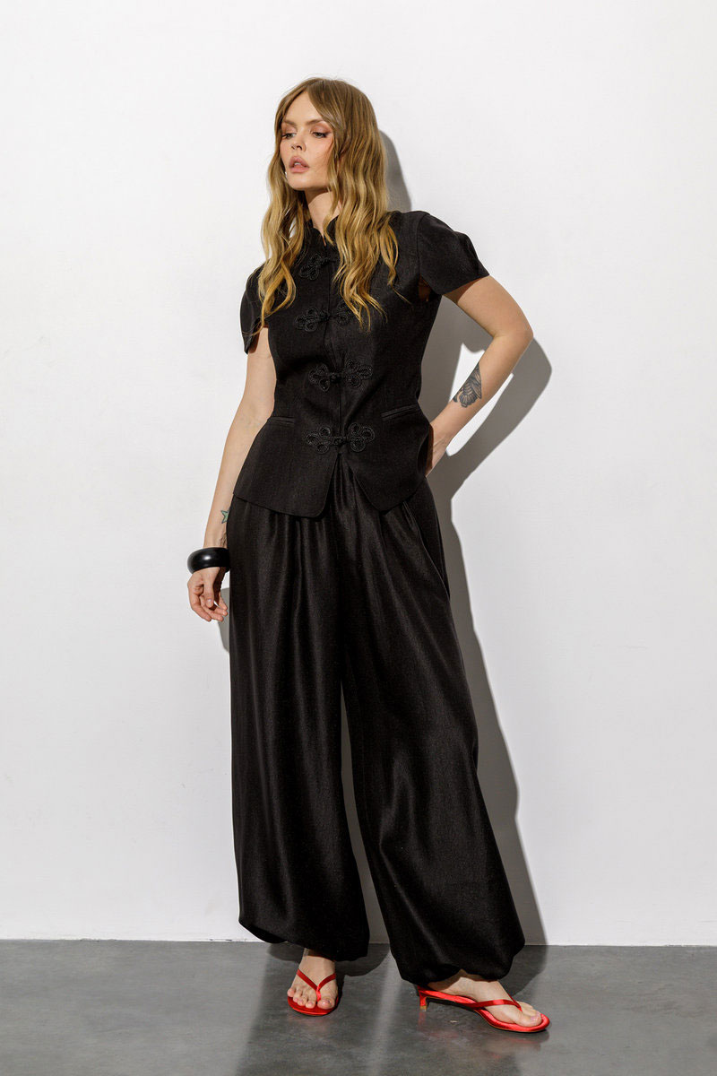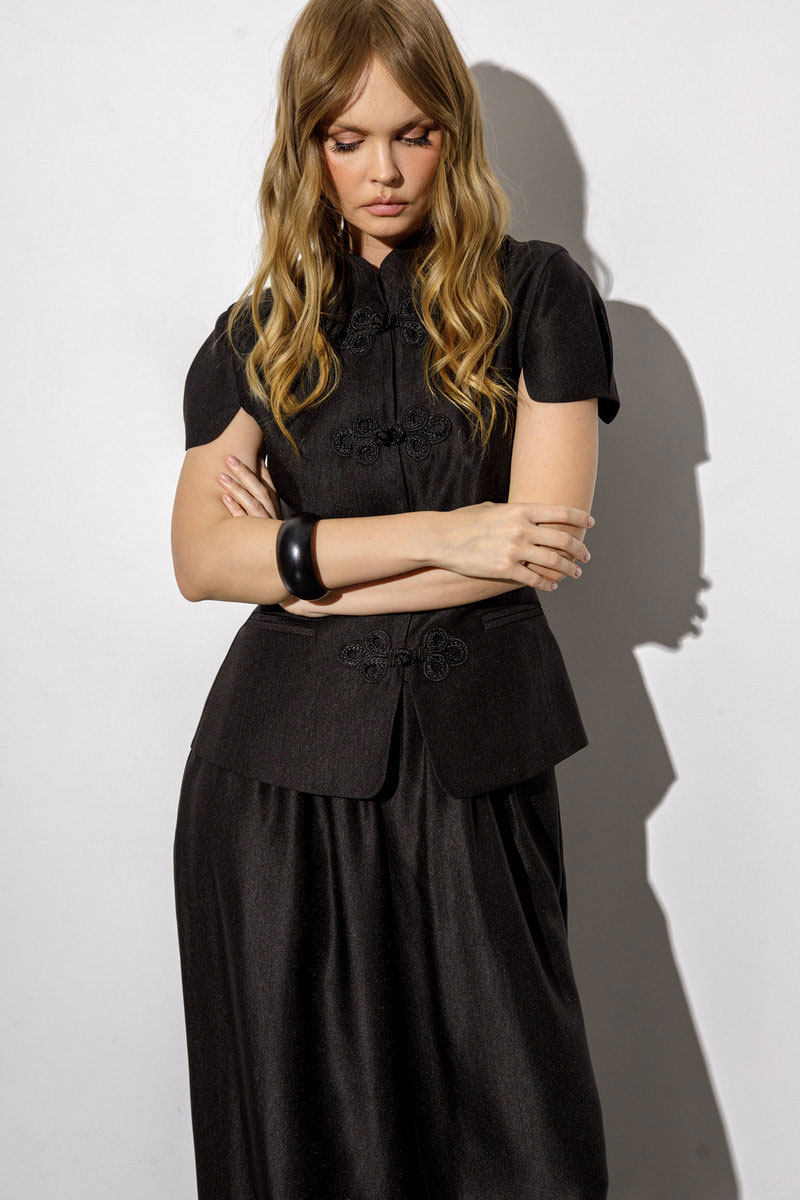 Приталенный жакет с коротким рукавом в восточном стиле (приобрести брюки с фото можно по арт. 6671).