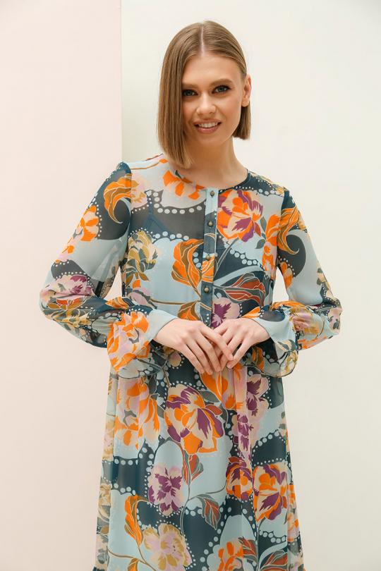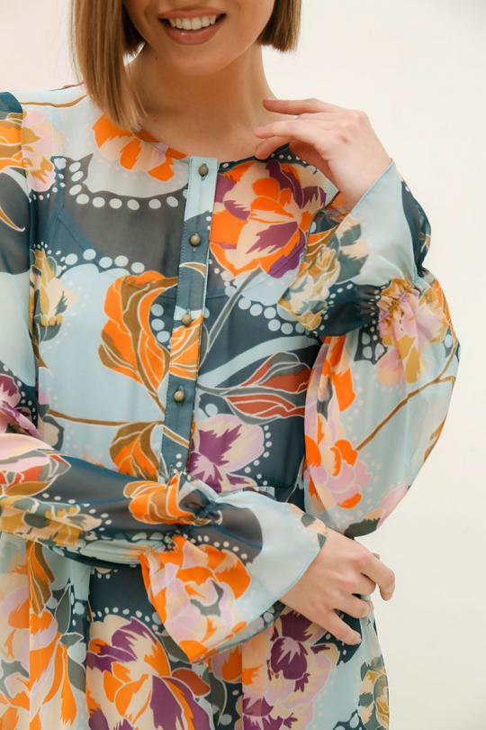 Невероятно стильное романтичное платье из легкого шифона. Талия отрезная, спереди застёгивается на пуговицы. Верхнее платье из шифона, нижнее платье-комбинация.
