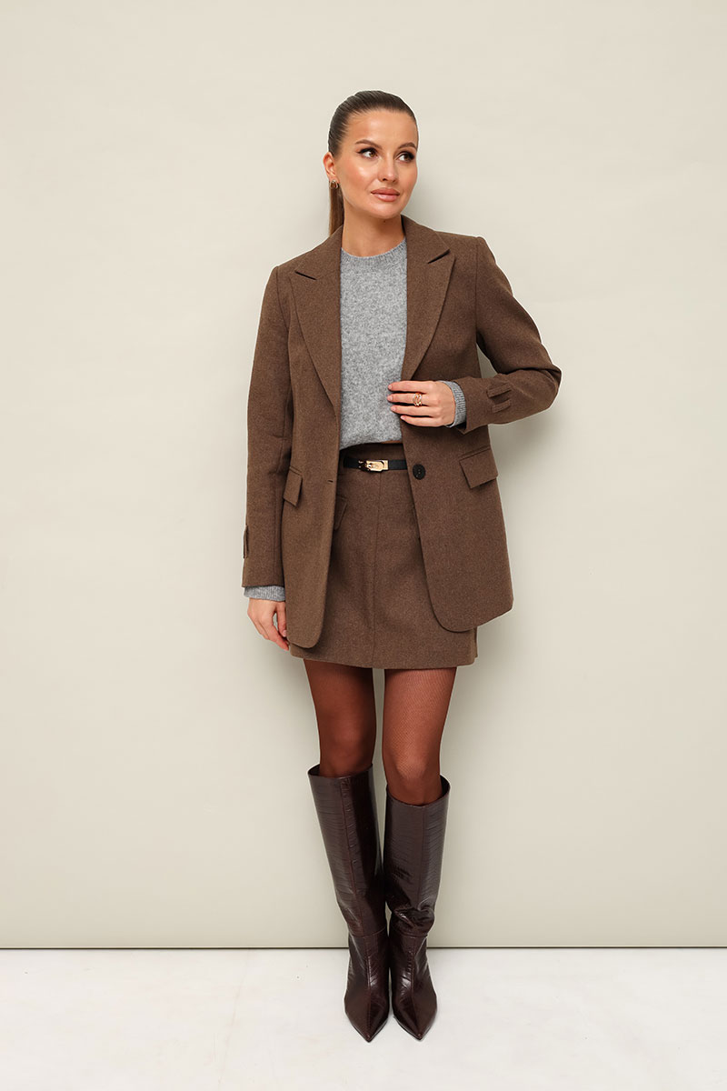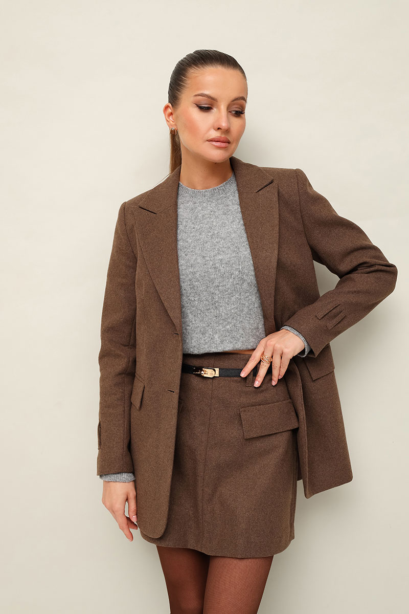 Стильный 2-предметный комплект, состоящий из жакета и юбки-шорт. Комплект выполнен из