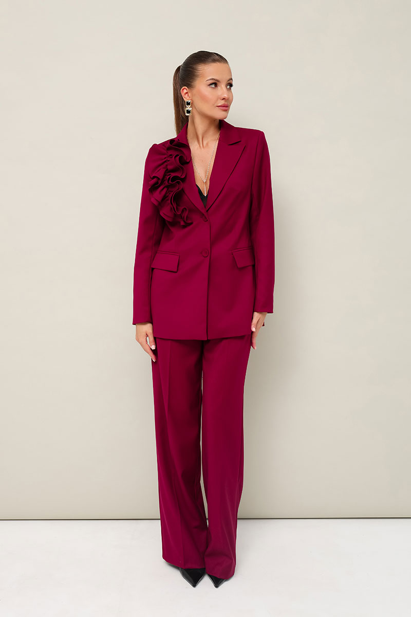 Эффектный 2-предметный комплект, состоящий из жакета и брюк, выполненный из костюмной ткани.
