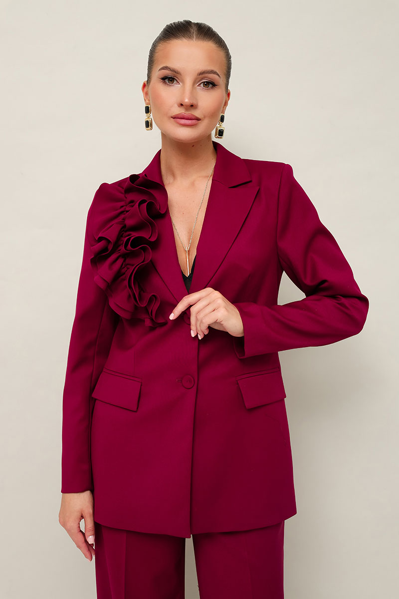 Жакет женский полуприлегающего силуэта с центральной застежкой на петли и обтяжные пуговицы.