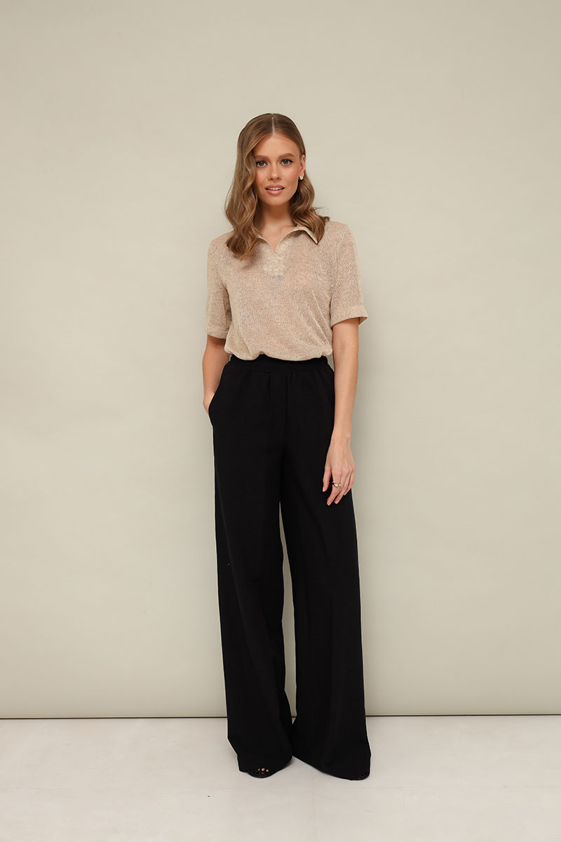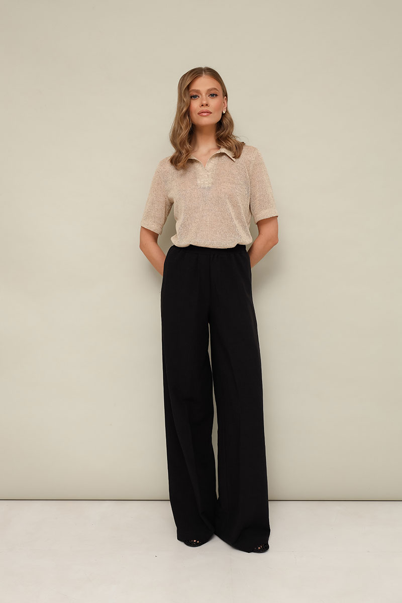 - Состав: поло: лен 90%; ПЭ 10%; брюки: лен 55%; вискоза 45%