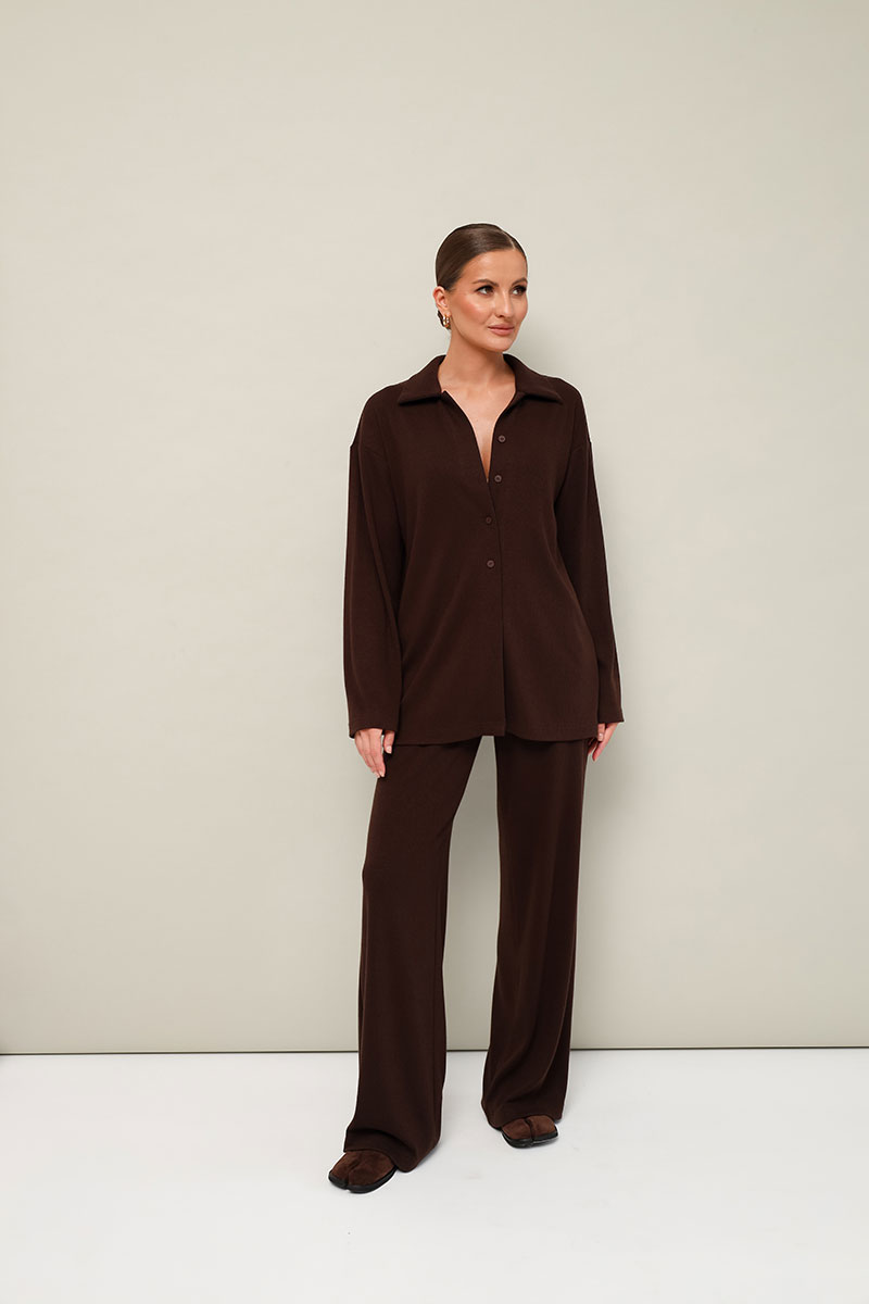 Комфортный брючный комплект с джемпером, выполнен из качественного трикотажного полотна.