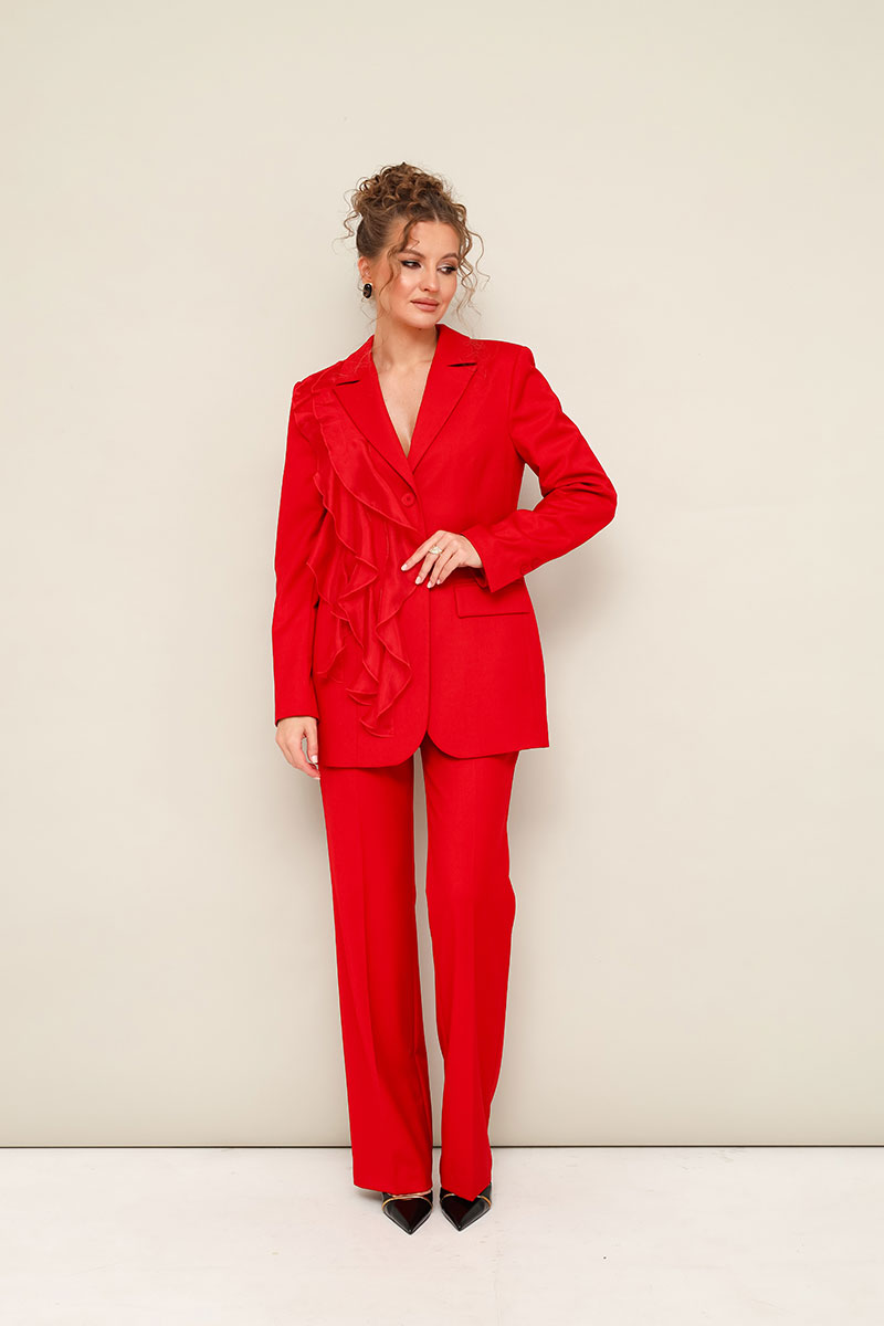 Комплект 2-предметный, состоящий из жакета и брюк, выполненный из костюмной ткани.
