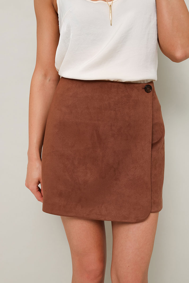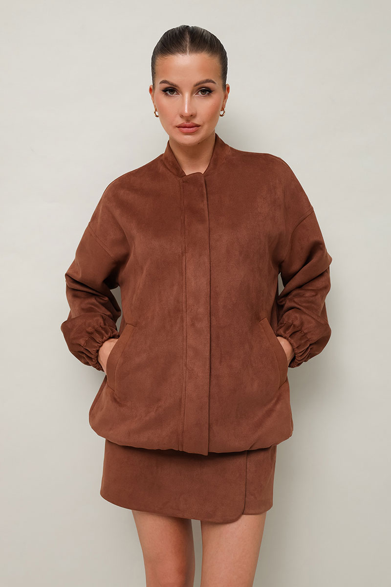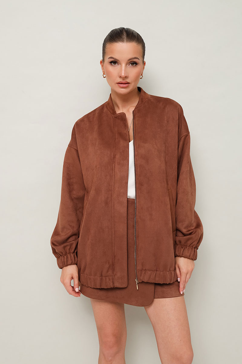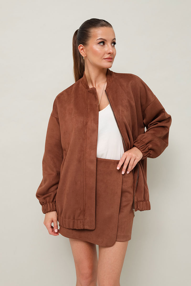 Комплект, состоящий из бомбера и юбки-шорт. Комплект выполнен из качественной экозамши.