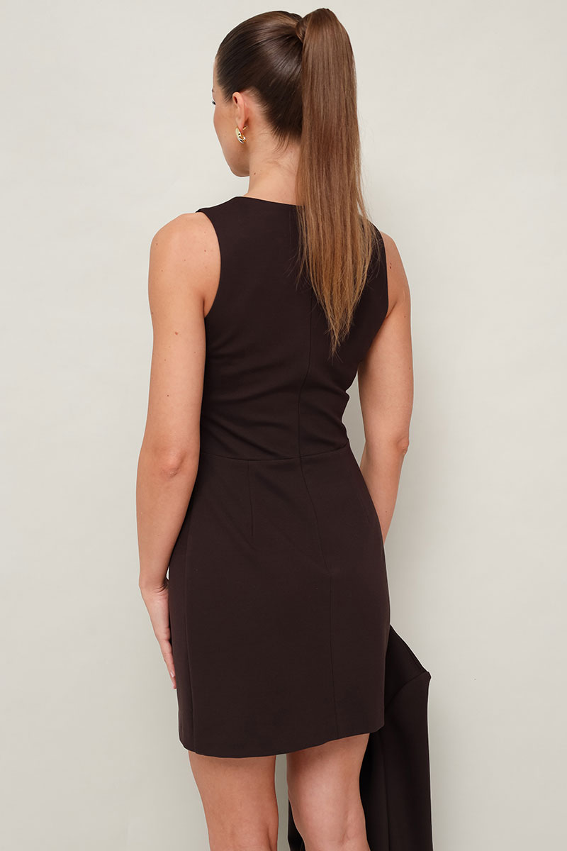 Стильный 3-х предметный комплект, состоящий из платья, юбки и жакета. Платье прилегающего силуэта, отрезное по линии талии в длине мини. Горловина оформлена вырезом каре. Застёжка в