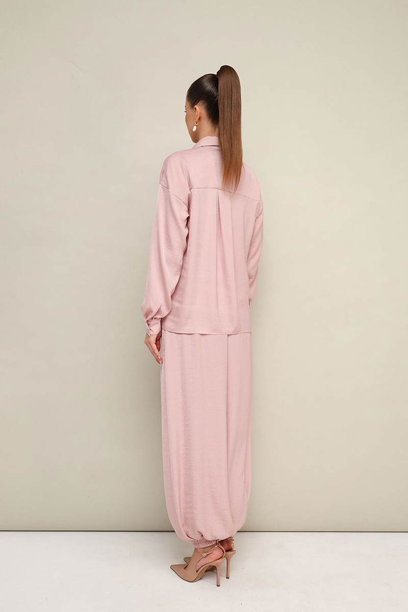 Комфортные брюки-алладины свободного силуэта с боковыми наклонными карманами. Притачной пояс и манжеты на резинке.