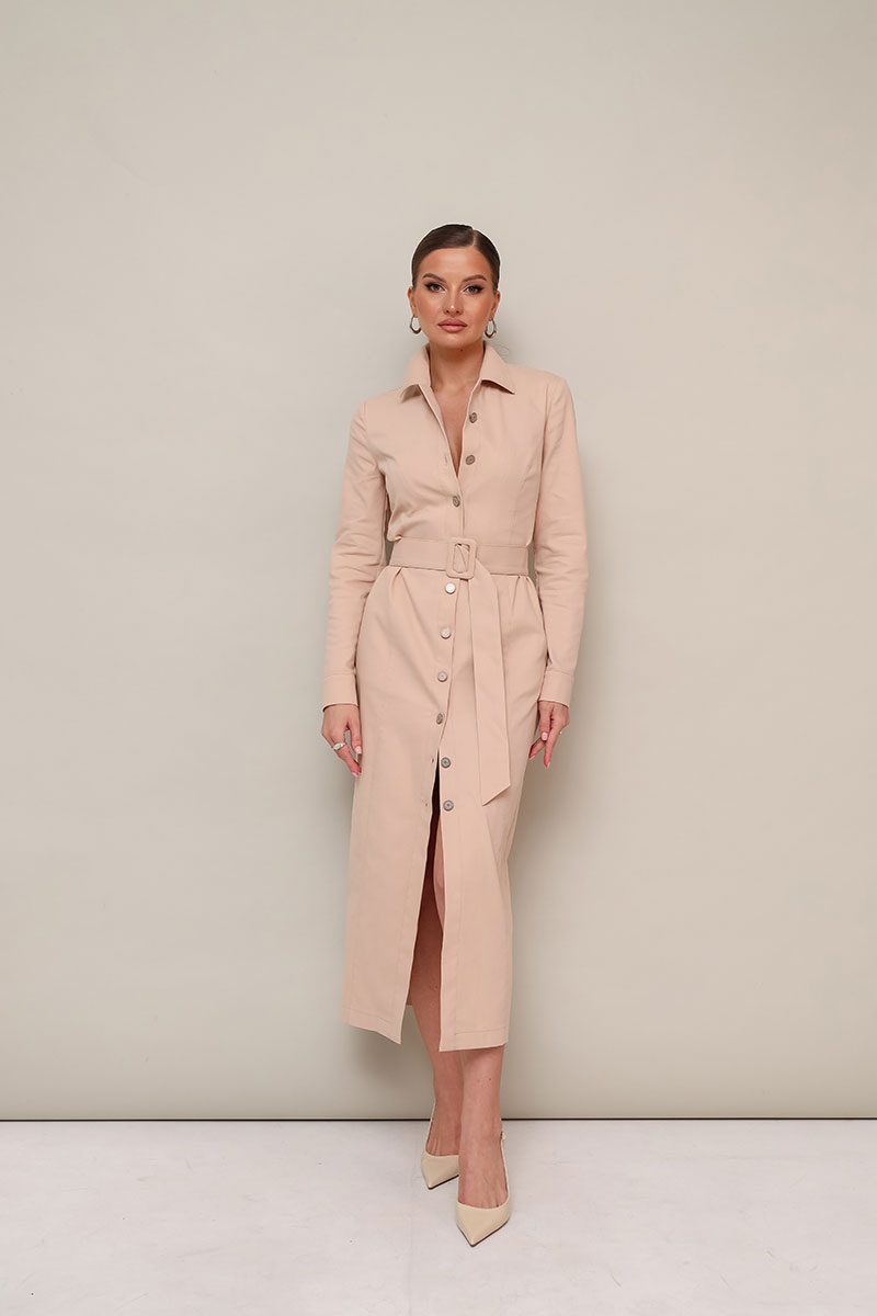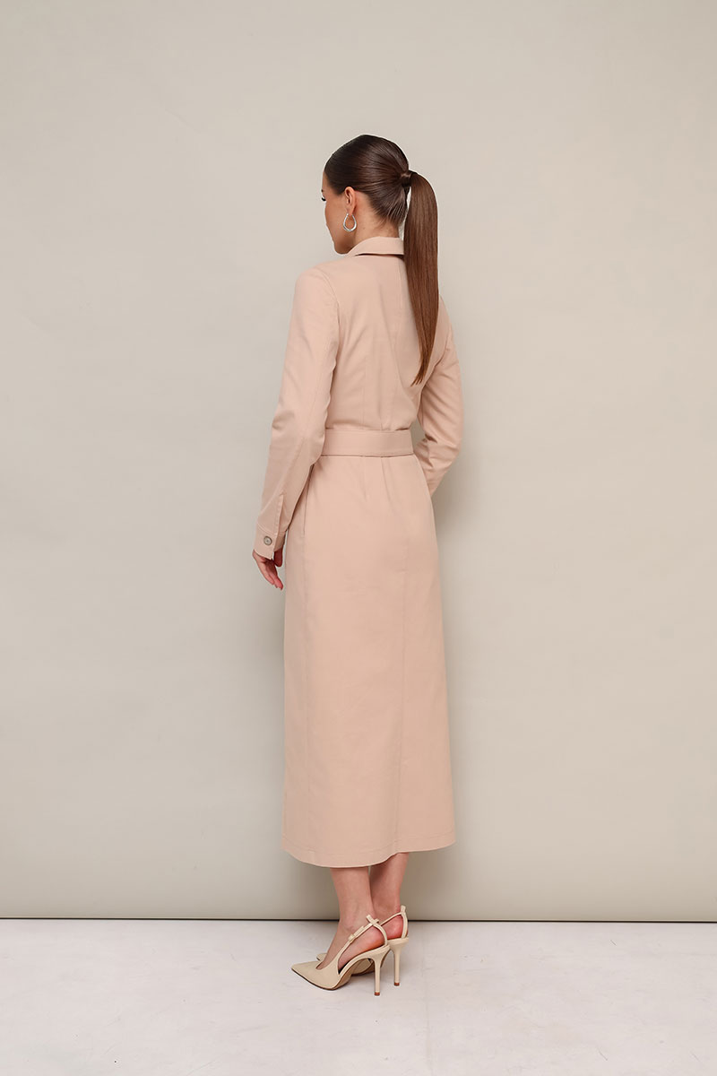 манжетами с застежкой на пуговицы. Спинка со средним швом. В комплекте прилагается пояс из основной ткани с пряжкой.
