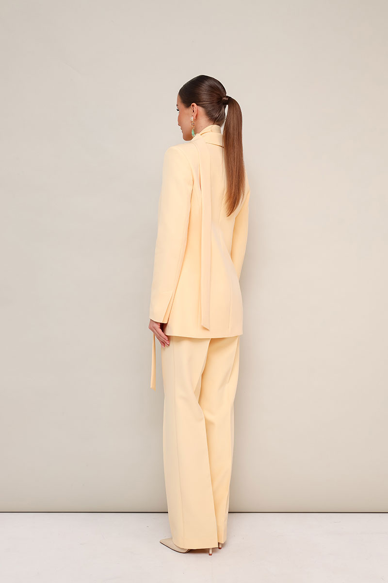Брючный костюм с шарфом из костюмной ткани.