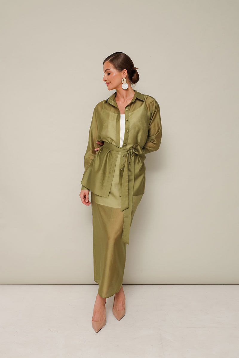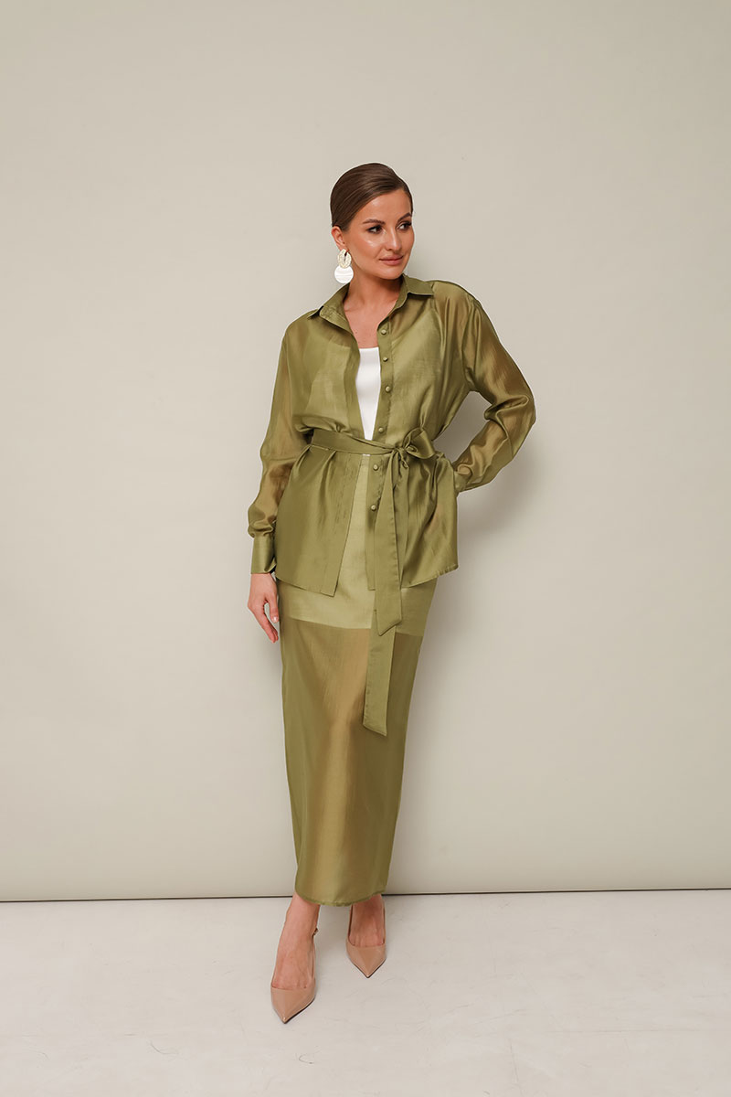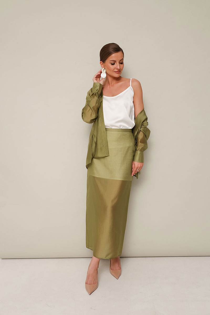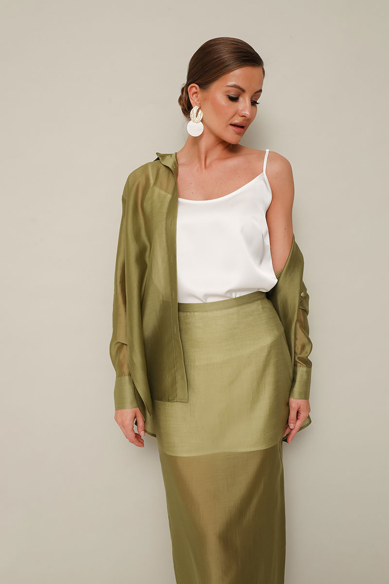Элегантный 3-предметный комплект, состоящий из топа, блузки и юбки.