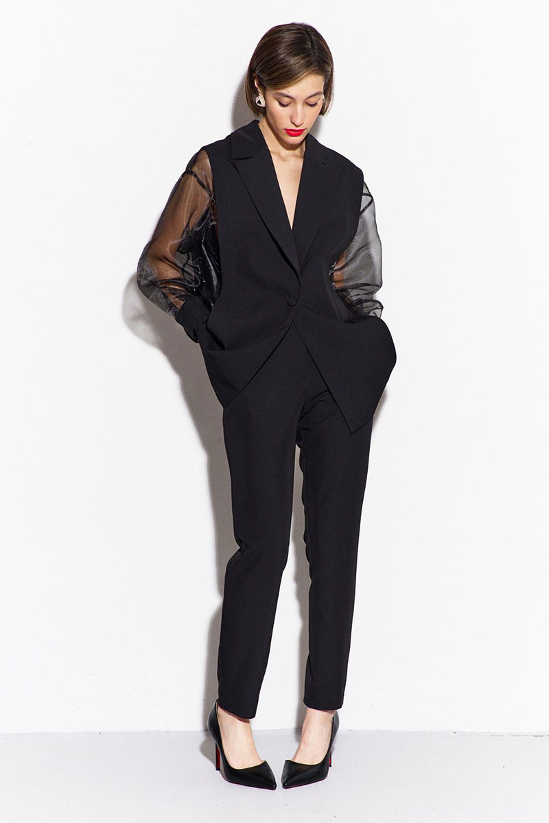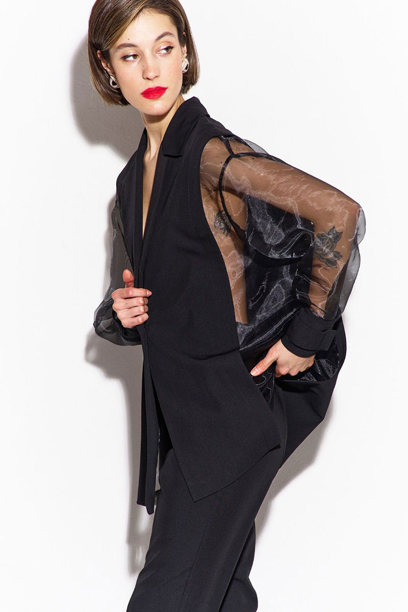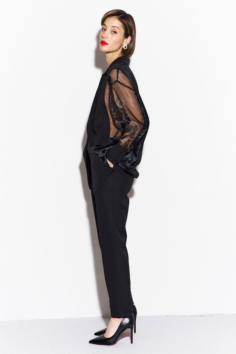 -линия плеча спущена, рукава одношовные, втачные, длинные