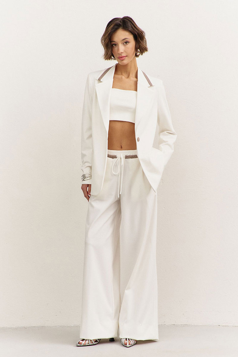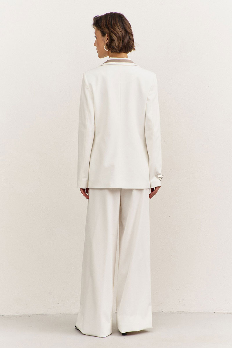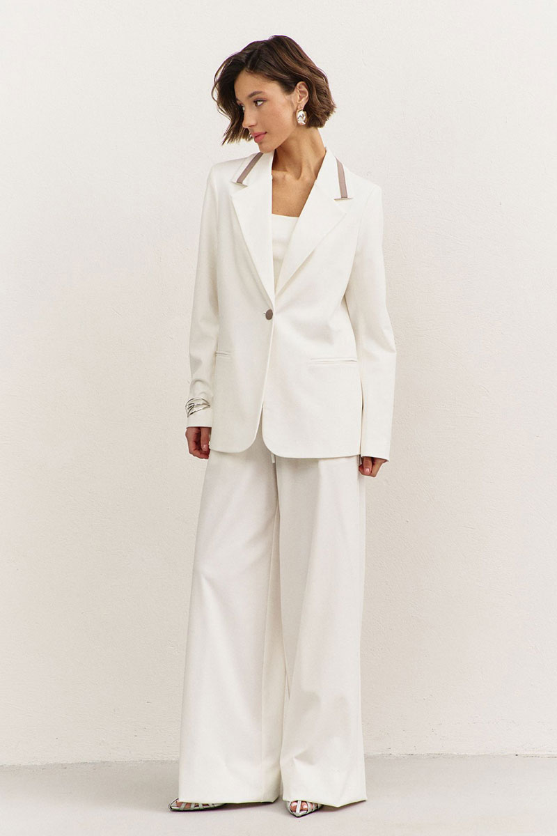 • воротник пиджачного типа с лацканами, с декоративным элементом из отделочной ткани
