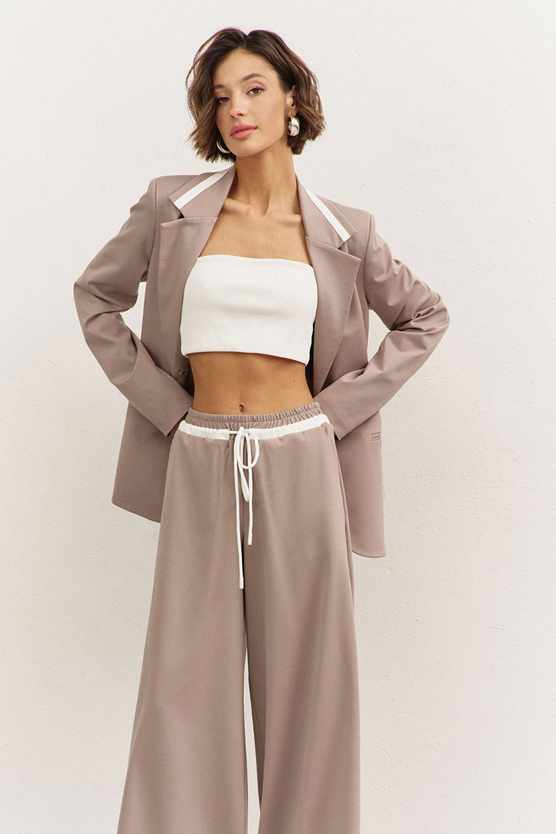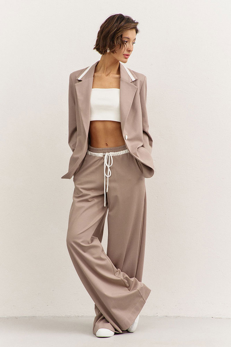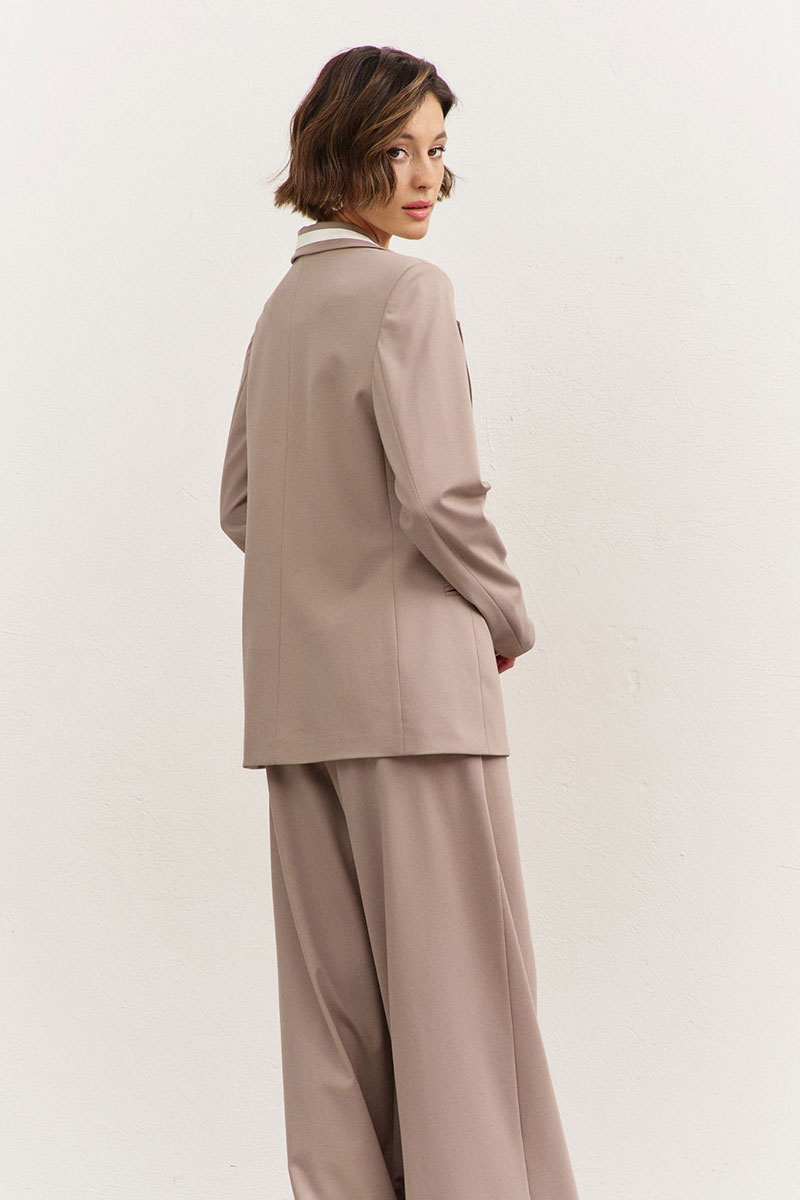 • воротник пиджачного типа с лацканами, с декоративным элементом из отделочной ткани