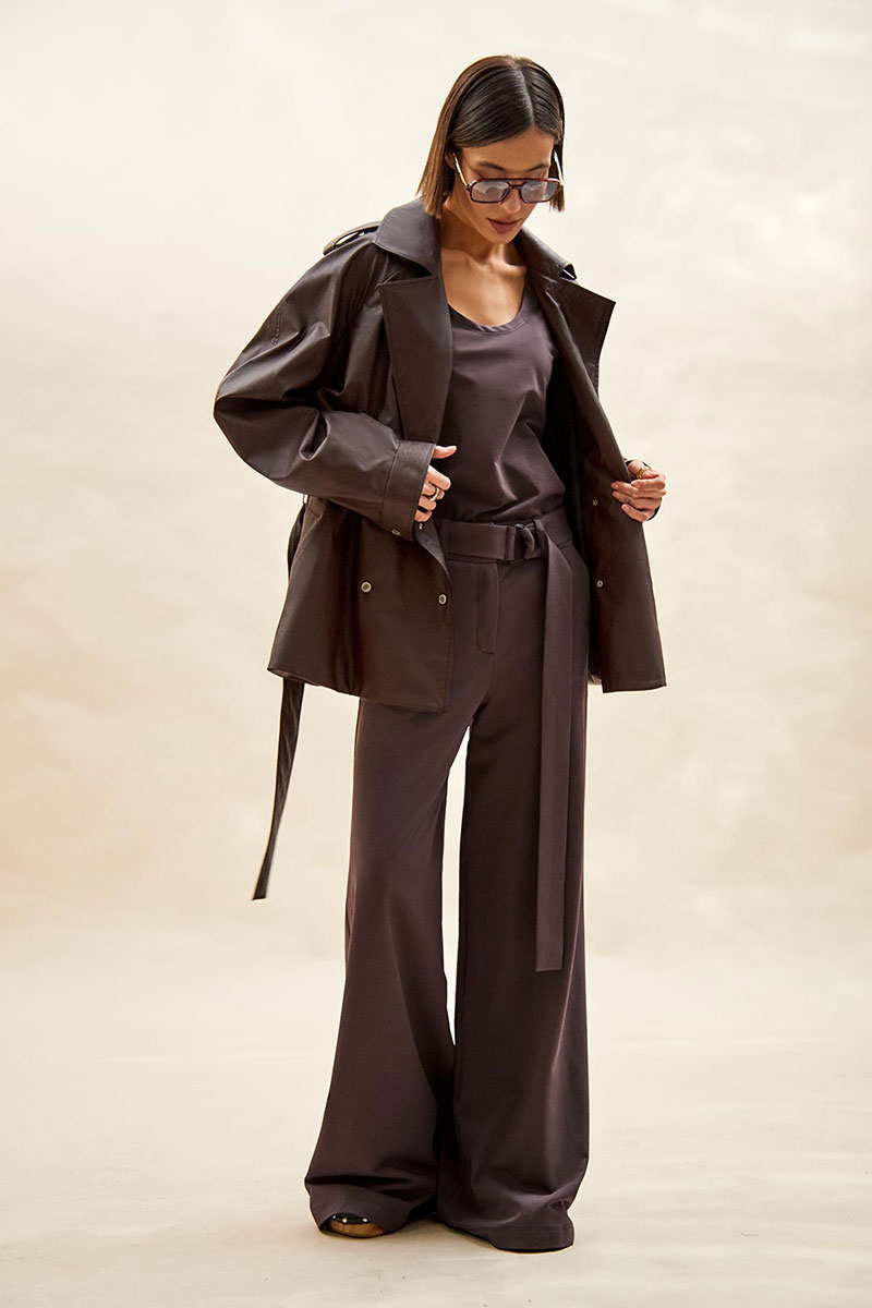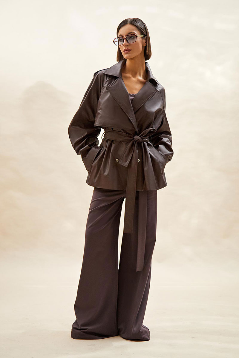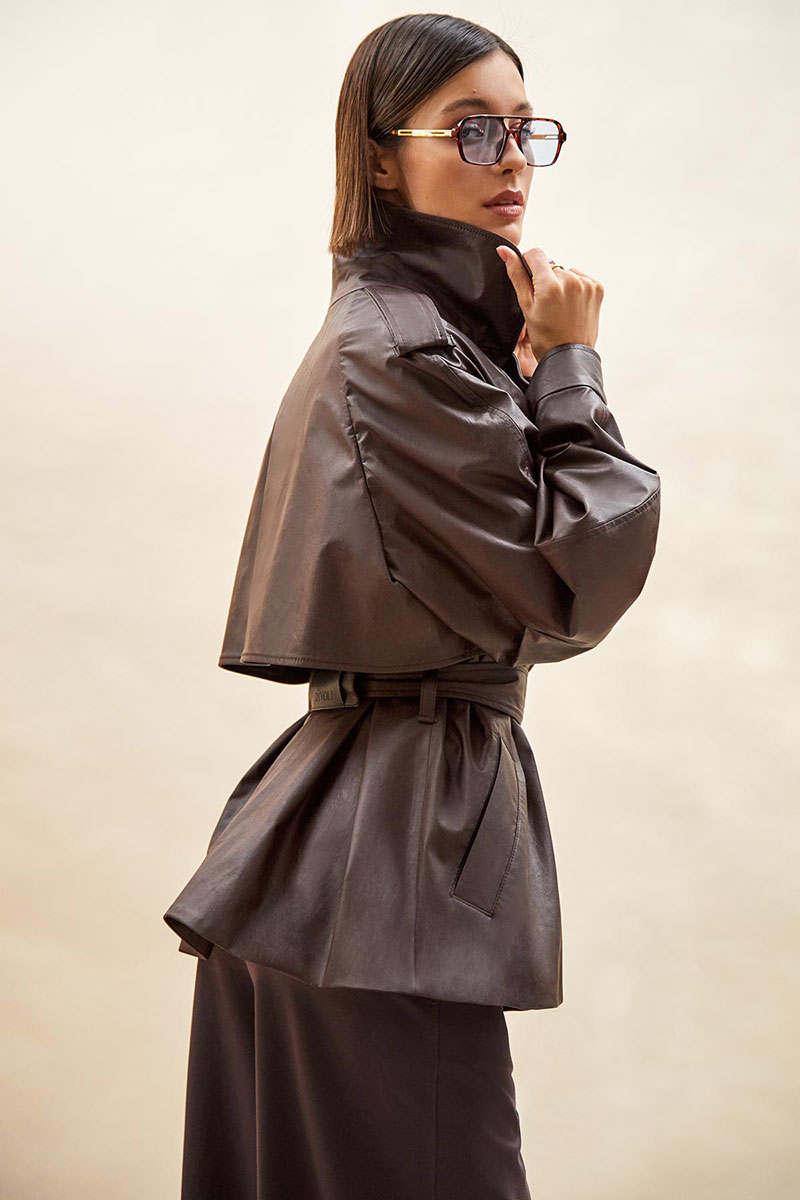 Тренч укороченный из экокожи: