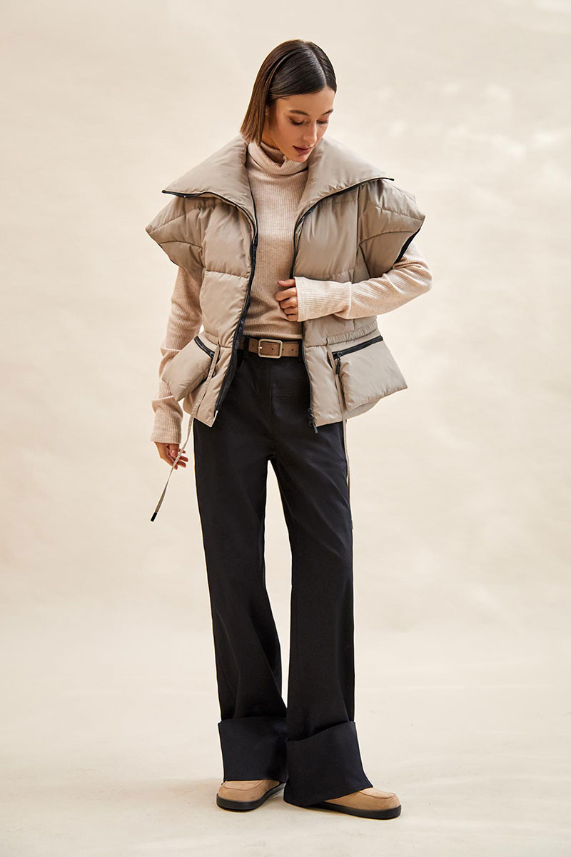 - высокий воротник-стойка;
