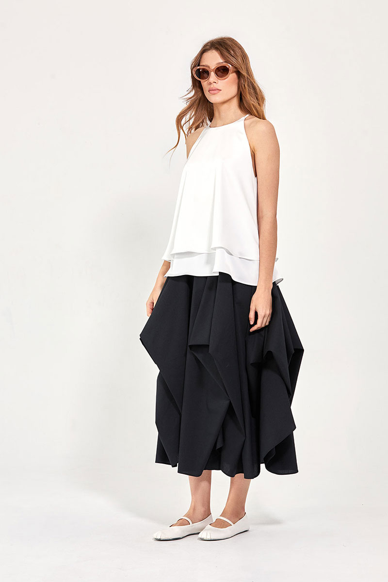 - двойной слой ткани: верхний короче нижнего на 8 см
