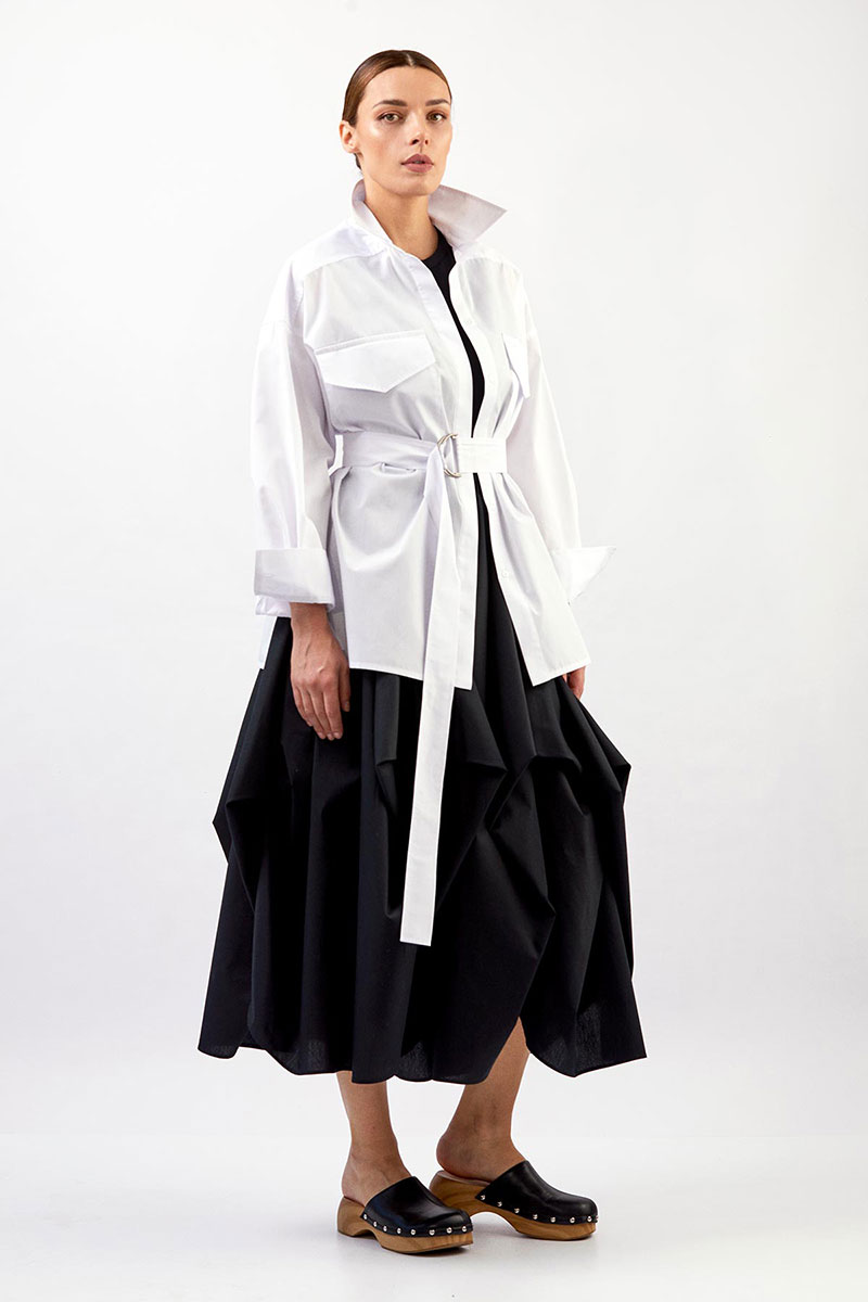 - в комплекте пояс из основной ткани с пряжкой-полукольцом