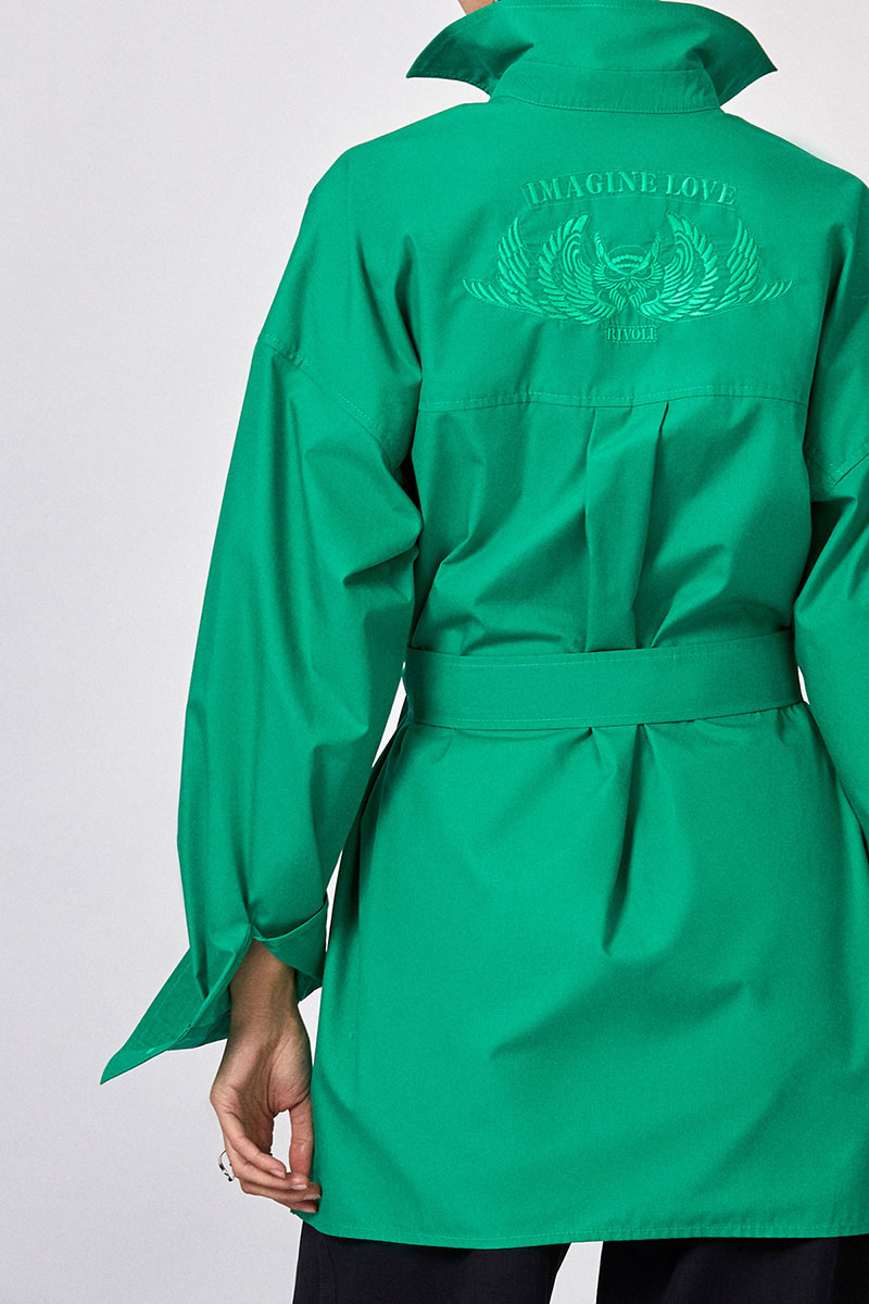 - на спинке переходящая на перед кокетка с вышивкой; от кокетки вниз — бантовая складка