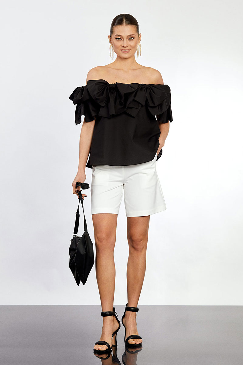 - с открытым декольте, вырез горловины горизонтальный, бретели спущены