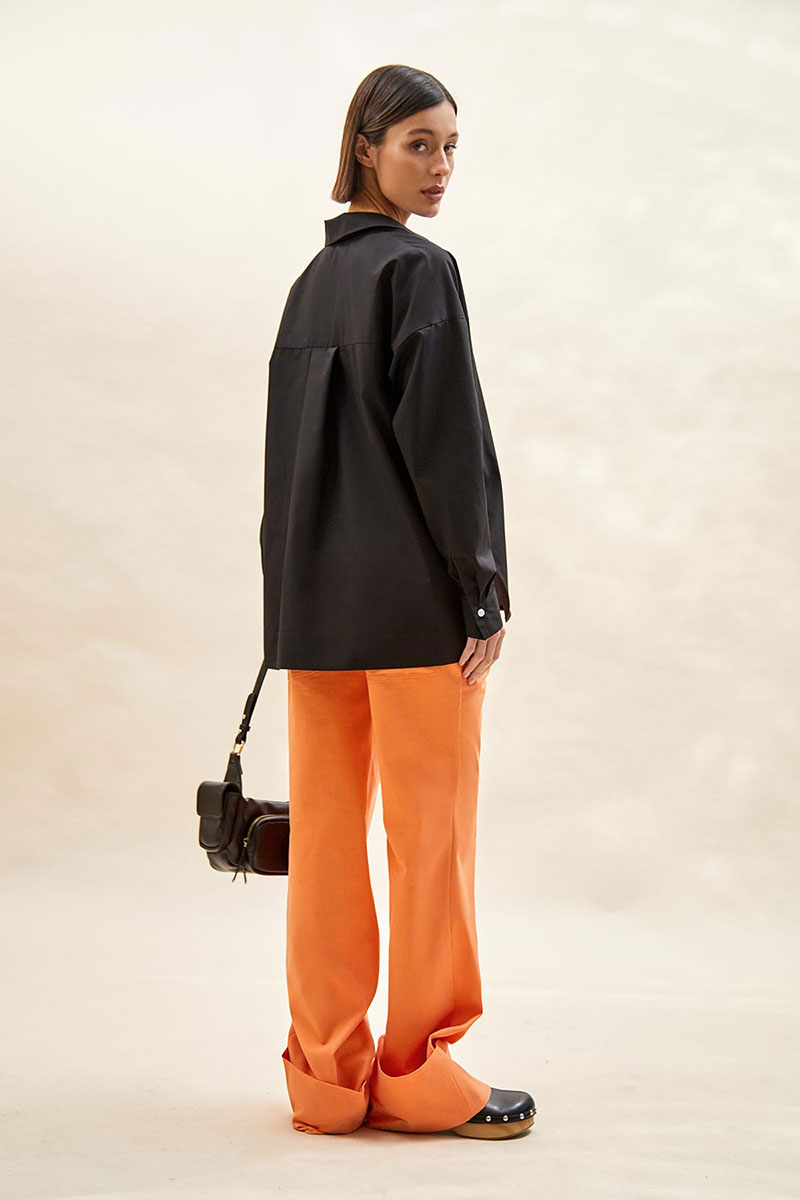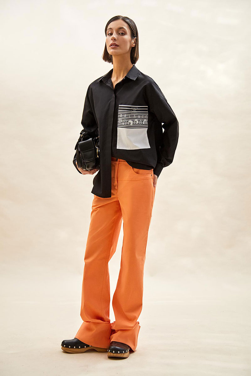 - слева накладной карман контрастного цвета с принтом и брошкой;