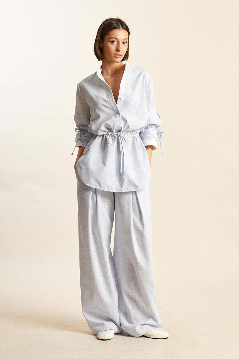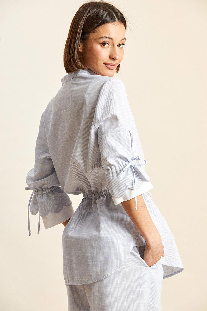 - по талии отрезная с кулиской и завязками, линия низа фигурная;